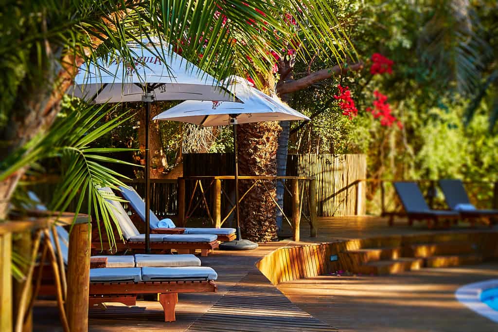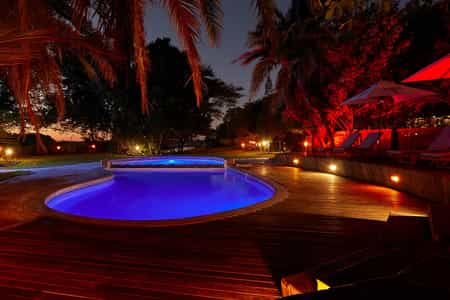 Crocodile Camp Safari & Spa, situated on the banks of Thamalakane River in Maun Botswana, is an oasis for those who love the Safari experience. Croc Camp, with a distinguished heritage, has been a palace of adventures for visitors since 1946. Crocodile Camp Safari & Spa boasts a capacity of 43 lodging guests and 100 campers. Attention to detail ensures individually decorated rooms for African styled comfort in every space. The camp boasts a restaurant, dining room, spa, fitness centre, pool (refresh yourself by taking a nice dip or just sunbath) and the famed Croc Rock Bar. Mealtimes at Crocodile Camp Safari & Spa are a sociable affair and guests are treated to sumptuous dishes, fresh produce and daily baked confectionery from the kitchen.