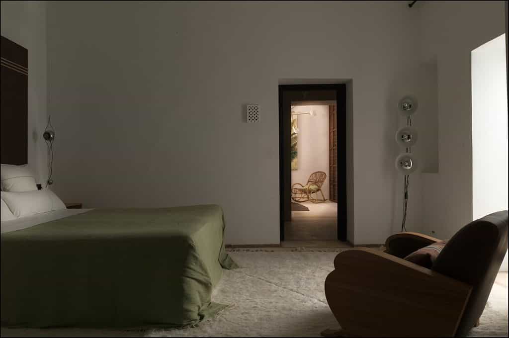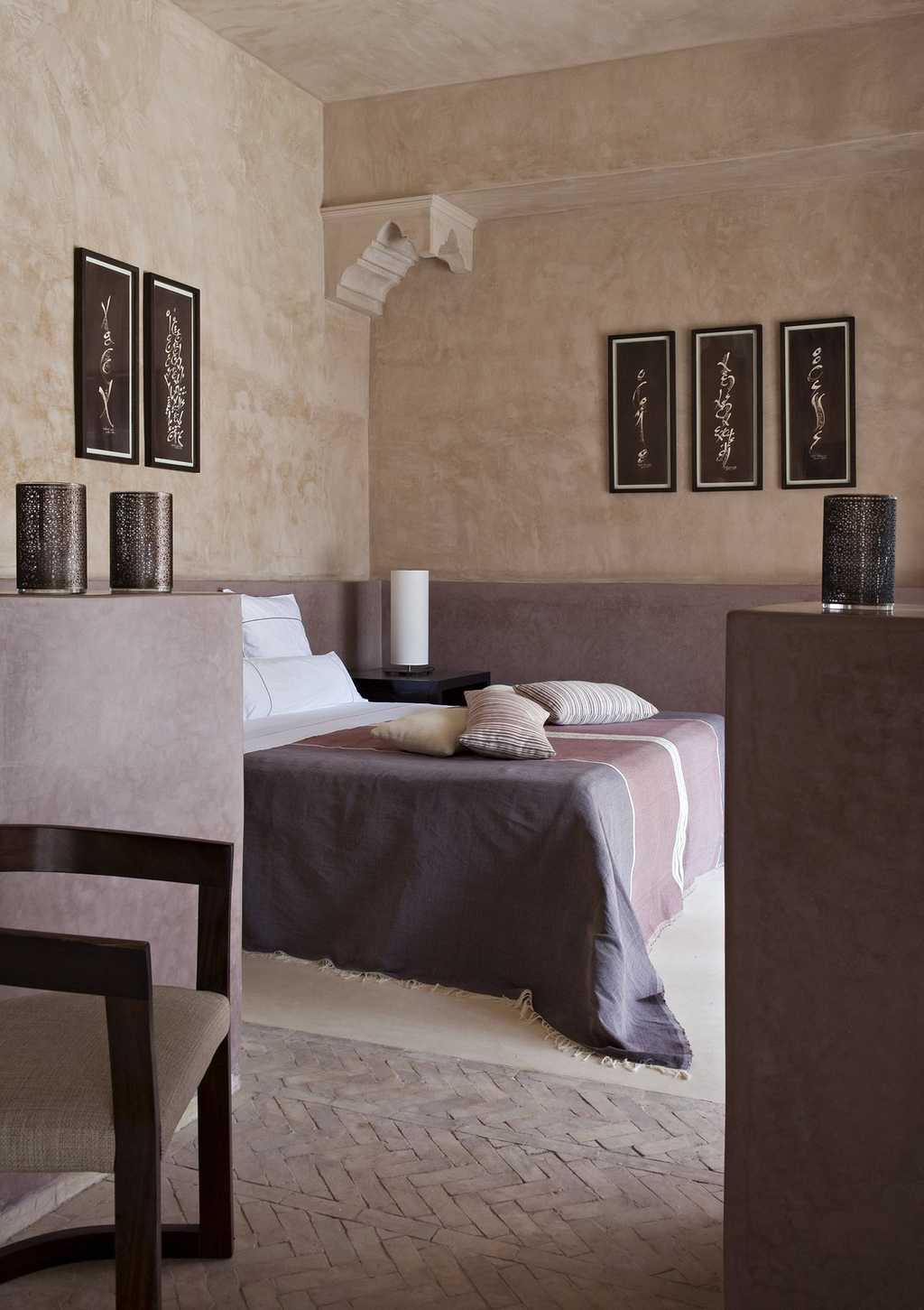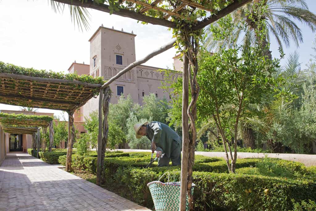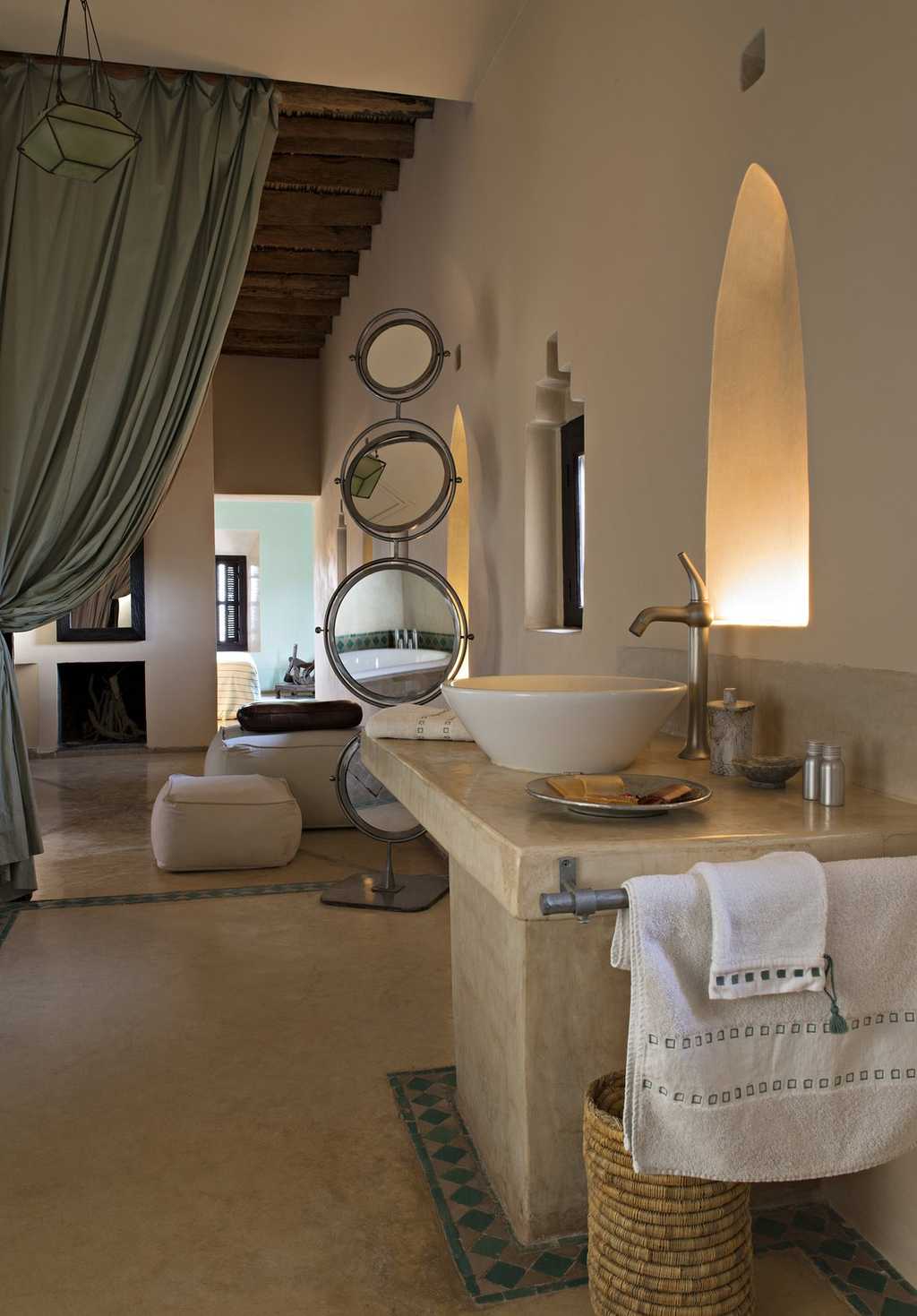 With walls of rammed earth and tadelakt plaster, the rooms have a soothing, sandy tone, echoed by the creamy linens, stone fireplaces, and cosy Berber rugs. Decor is classically Moroccan -think oversized ceramic vases and woven baskets - but with plenty of modern detailing in the industrial lights and quirky artwork. Seven rooms are located in the main kasbah, and there also seven larger garden suites, all with views of the Atlas Mountains. Suites have a private terrace, lounge, and bathroom with a large tub, fireplace and heated floors.