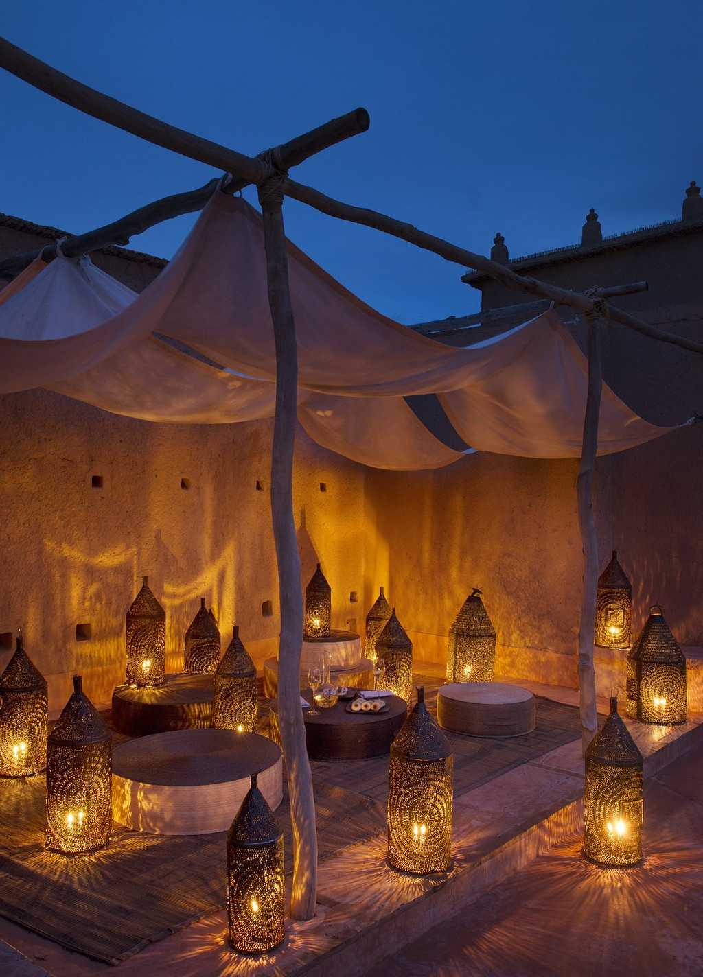 The courtyard pool provides a quiet spot to cool off or sunbathe, and rustic spa is simple but oh-so-effective. Dar Ahlam is a 'no menu' kind of place where every meal is tailored to you from the chef's book of 450 recipes. Every dish is made with vegetables grown on the grounds and locally-produced ingredients (from pomegranate vinegar to argan oil). As for eating locations, choose from the private dining room, or the main kasbah, dotted with fire-lit lounges and open-air sitting areas. While there's no bar, private drinks on the rooftop are pretty memorable too.