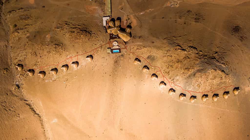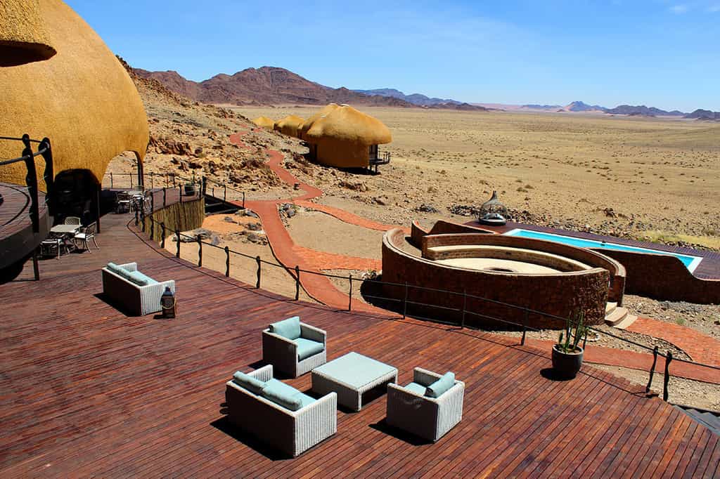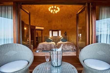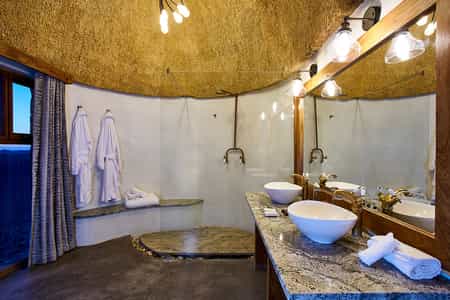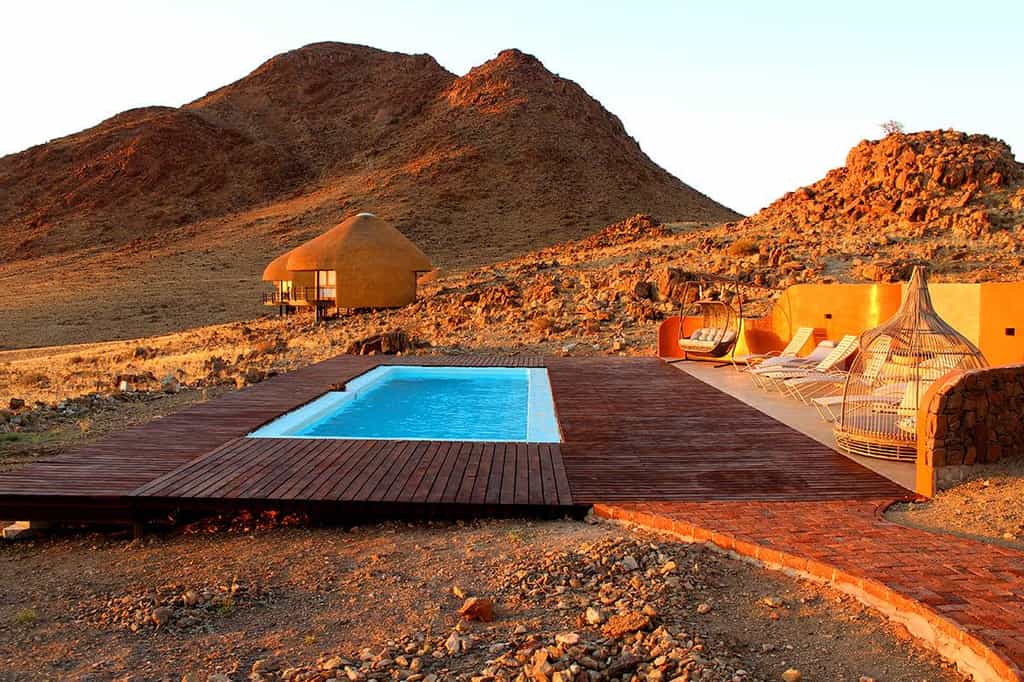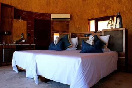 Desert Hills offers deluxe double or twin rooms in 18 en-suite huts. Nestled on a rocky outcrop, thatched roofs mingle with dark wooden finishes and cool, white linens to create little pods of comfort. Despite the desert wonderland just outside, the rooms are fitted with all your mod-cons. Enjoy air conditioning, a minibar and cosy seating area, along with a private balcony that showcases the standout views.