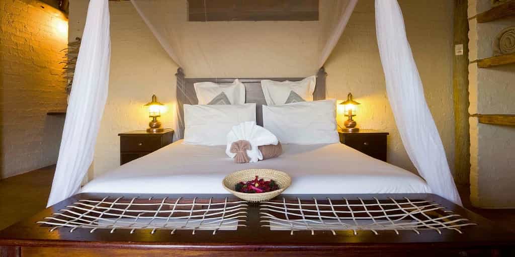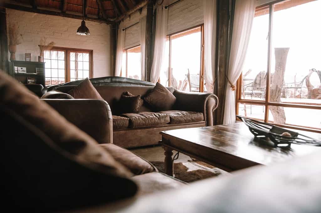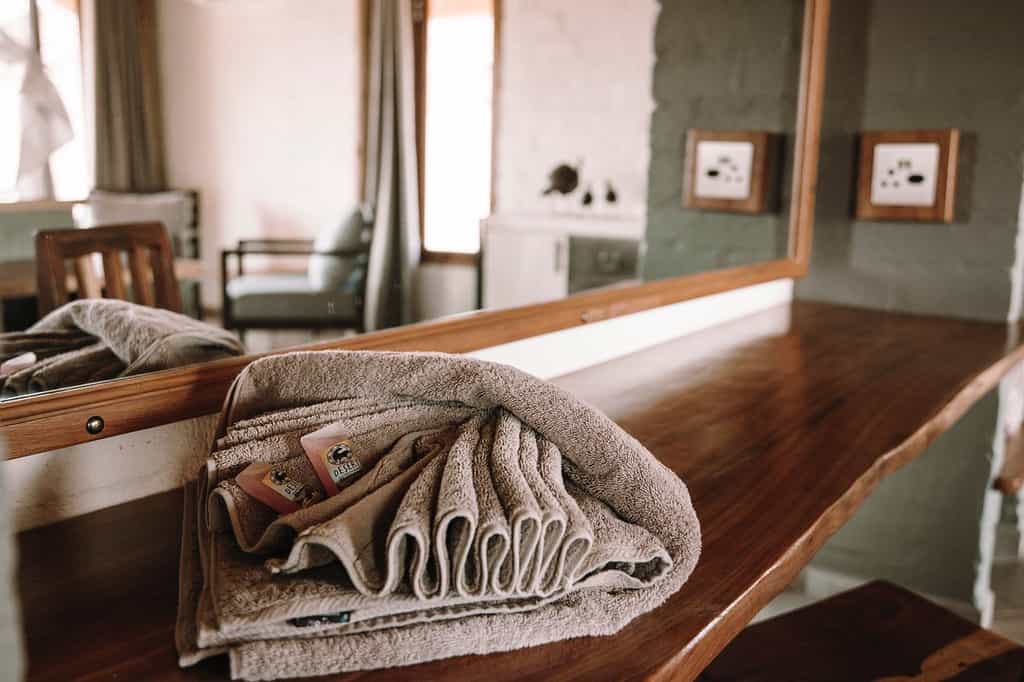 Twenty-six thatched cottages dot the property, each conveying that quintessential African farmhouse charm with their whitewashed walls and dark wood furniture. The thatched chalets are tastefully decorated and feature double or twin beds, and an en-suite bathroom. Every one comes with its own private terrace where you can watch the sunrise paint the Totterkaum Mountains in shades of coral and gold. Aircon and water heaters run on solar energy, a part of the lodge's admirably green credentials.