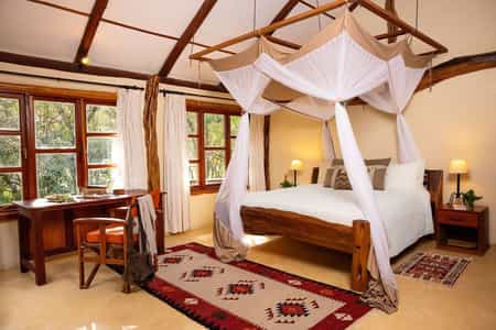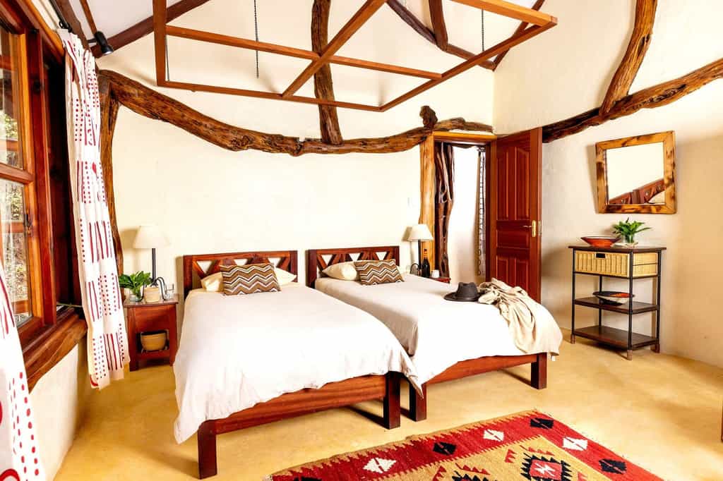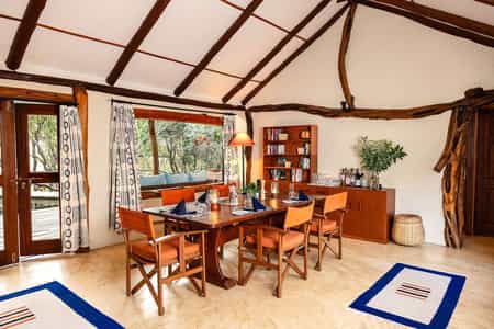The two-bedroom, fully staffed house is designed for families or groups who want the privacy of their own home while on safari in Kenya. Can comfortably host 4 people, maximum 6 pax in extra beds. The double bedroom is fully ensuite and the twin bedroom bathroom/ toilet are located outside the room – meaning guests have to walk out of the room to use them.