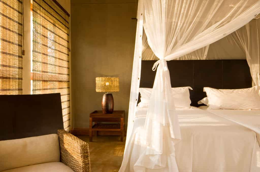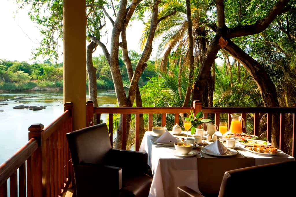There are 20 air-conditioned chalets perched high up on the riverbank, enveloped by a mature canopy. They are spacious, with big glass doors and windows, and a private deck to make the most of the superb views over the river. Large, comfortable twin beds are draped with mosquito nets, and there's a small desk, mini bar and a tea/coffee station. The substantial en-suite bathrooms have a tub, twin basins and indoor and outdoor showers, perfect for hot afternoons and evenings.