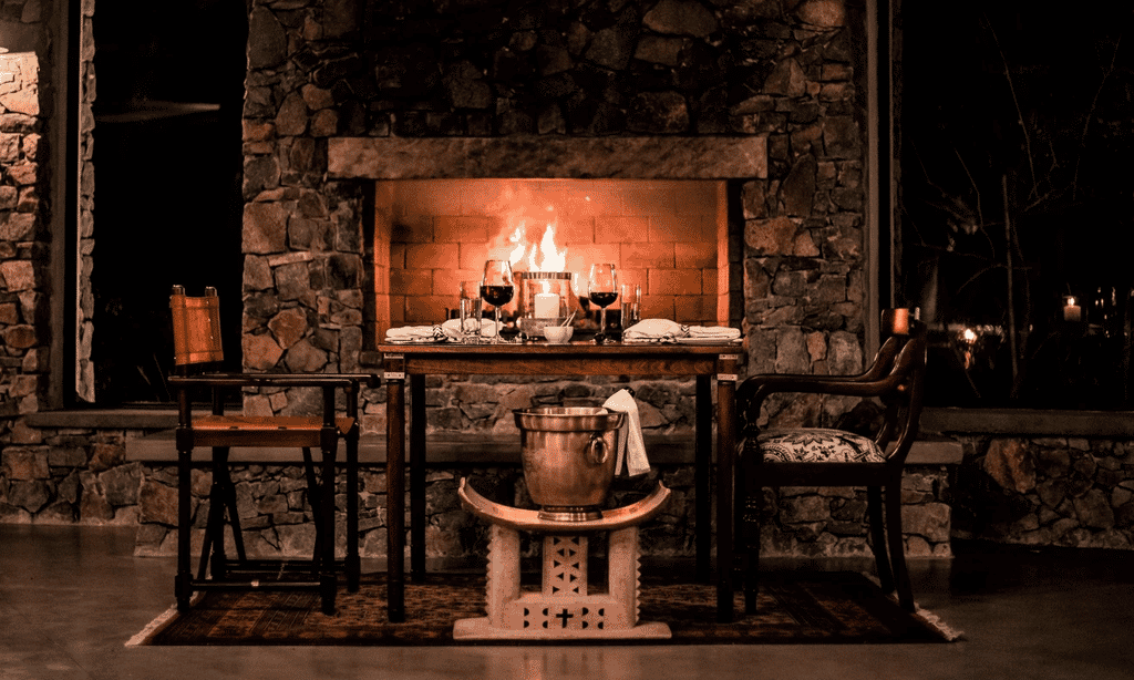 Four lavish private suites are set along the river banks in secluded spots, each with a private viewing deck and plunge pool. Floor-to-ceiling glass windows offer fabulous views of the surrounding bush, creating a feeling of being totally immersed in the wilderness. Natural colours and textures are incorporated in the sumptuous interiors, with en-suite bathrooms featuring deep stand-alone baths, and both indoor and outdoor showers. An open fireplace and underfloor heating are welcome treats during the chilly winter months.