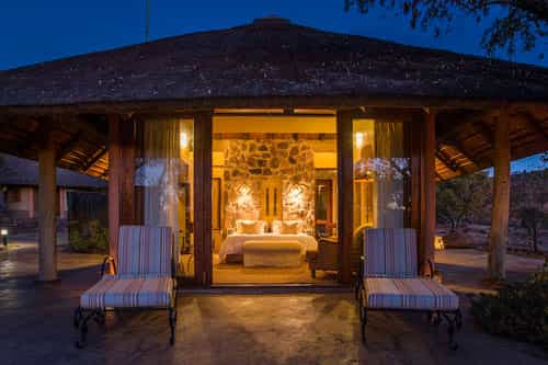 Each of the five suites offer intimacy and privacy, with panoramic views of the grasslands. Guests are able to look out onto the stunning African bushveld from the comfort of their beds. The romantic bathrooms open onto a private courtyard and have indoor and outdoor showers. Hair dryers and tea and coffee making facilities are provided. The family suite is luxurious and spacious and boasts two bathrooms, a main bedroom and a loft area with two single beds.