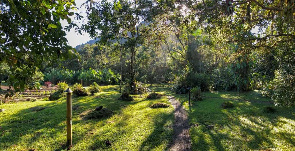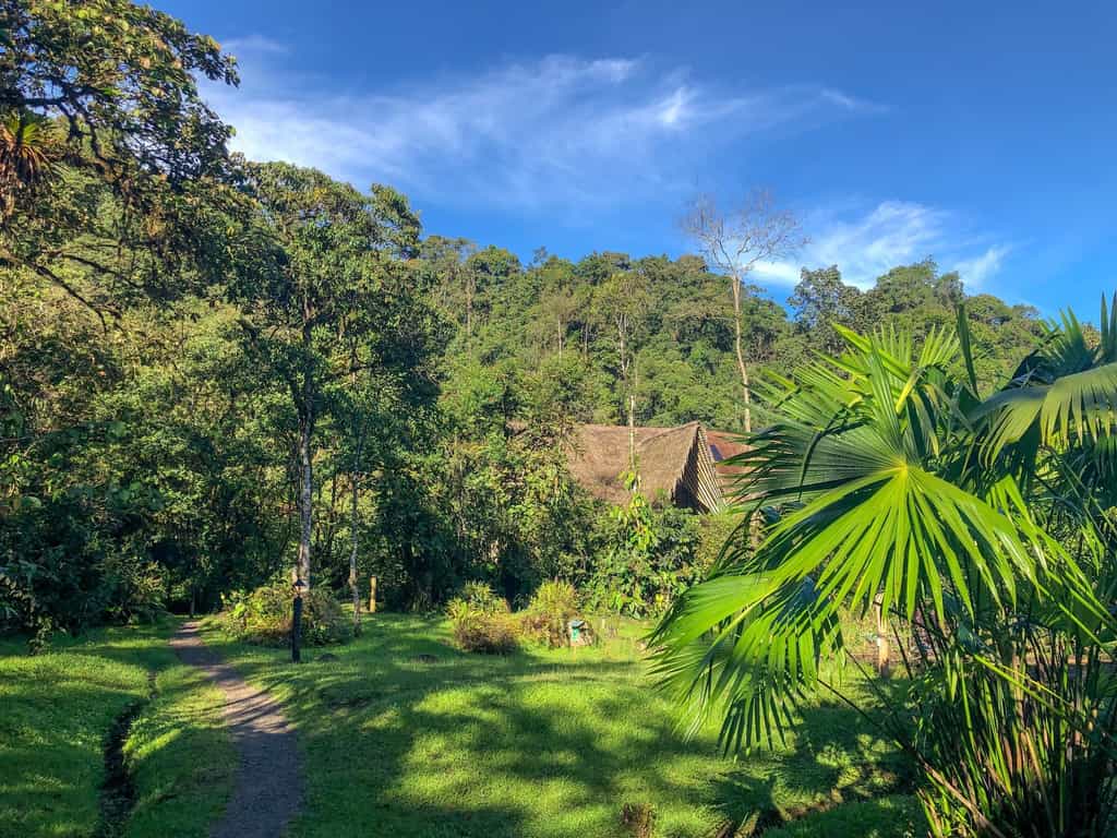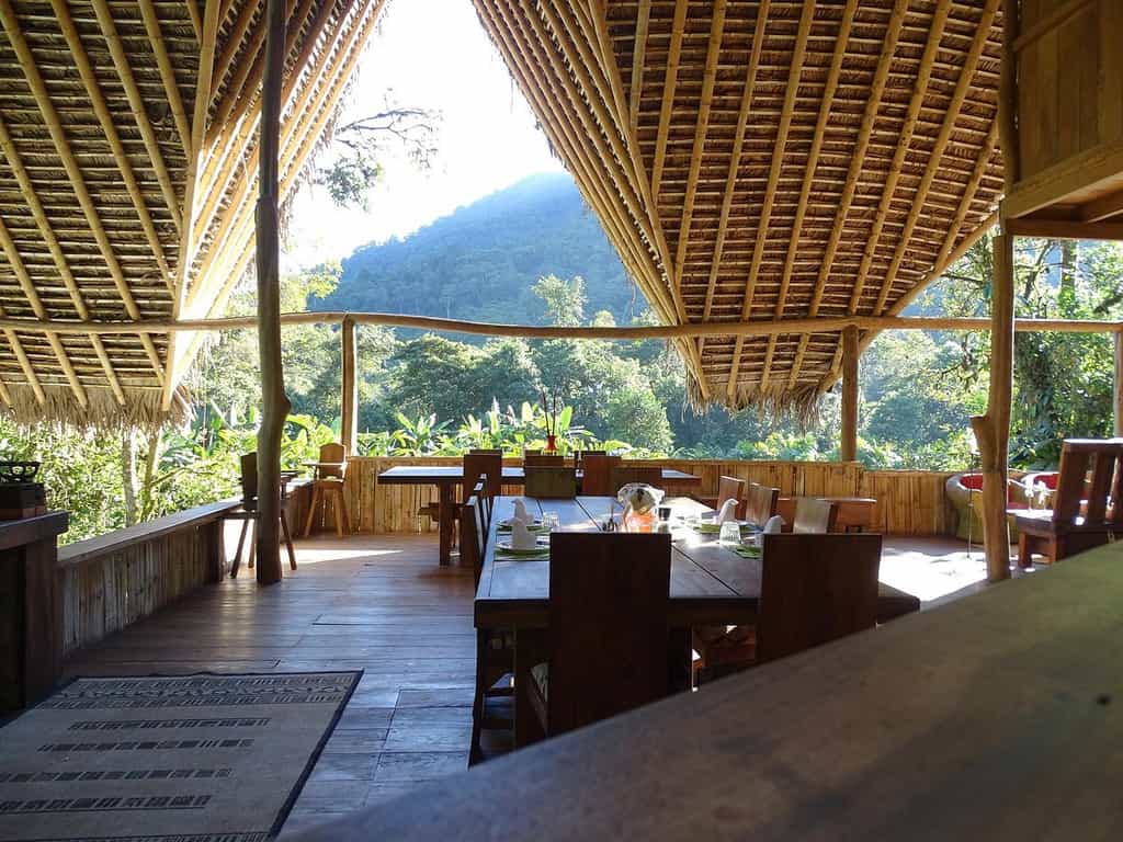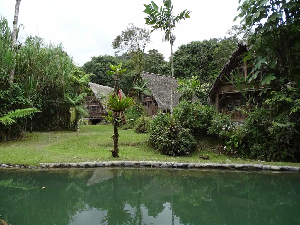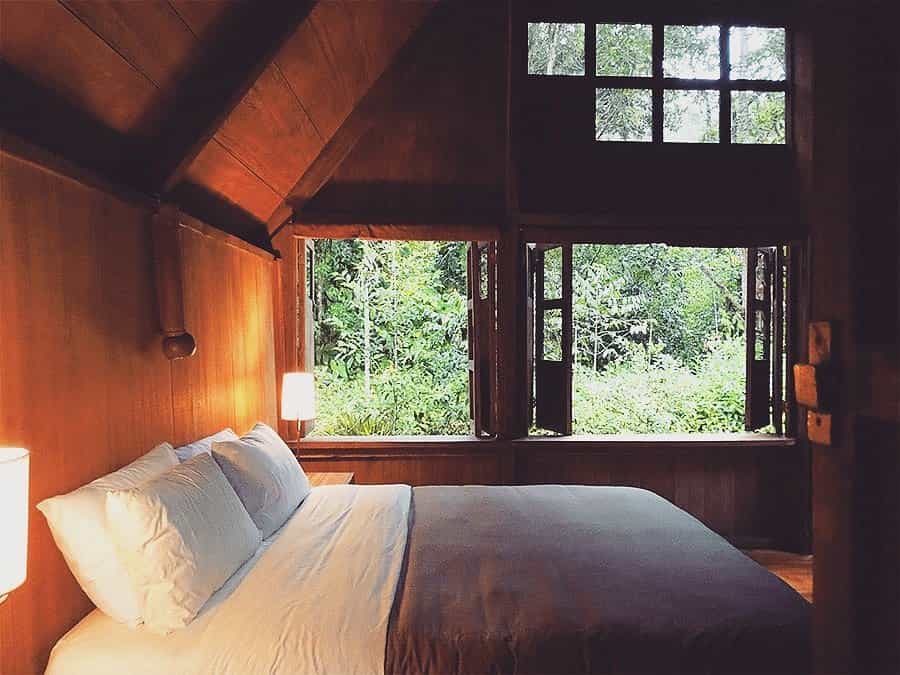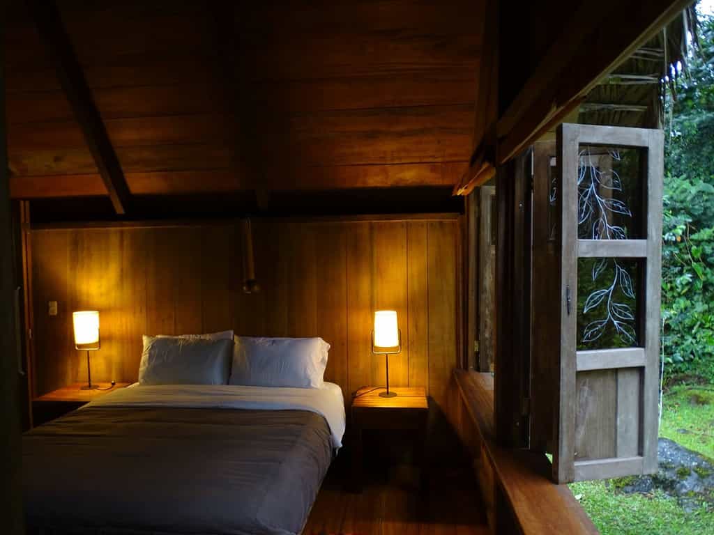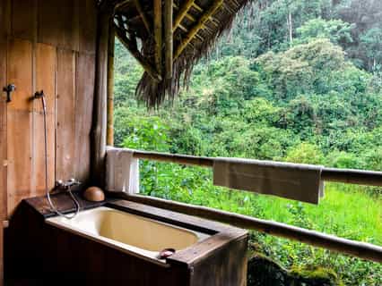 There are six cabins set along the Rio Mindo with understated, comfortable rooms and heavyset wooden beds draped in local textiles. Large windows bring the outdoors in, waking you with the sound of bubbling water and chirruping birds. The bathrooms feature large, alfresco tubs, all of which have fantastic views. The rooms also have a separate sitting area and hammock to laze in as the cool forest air blows on by.