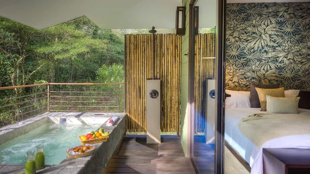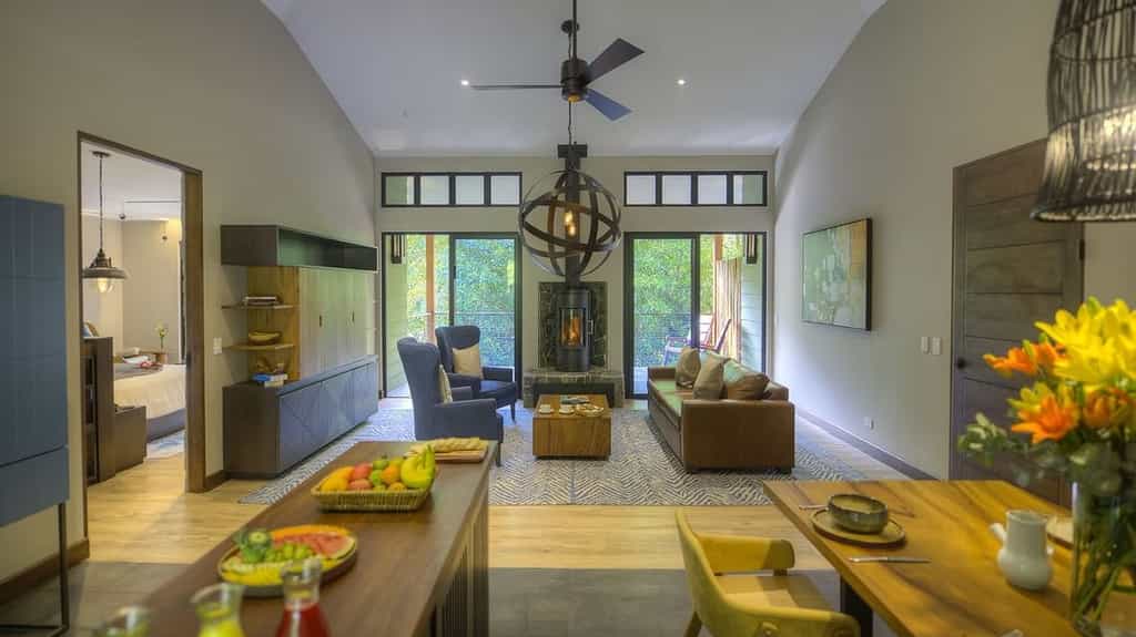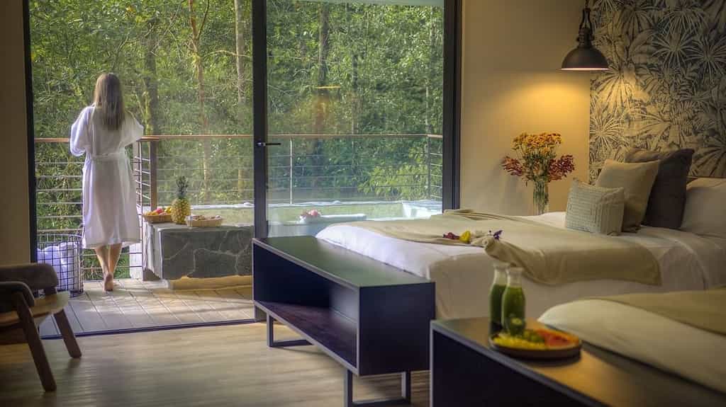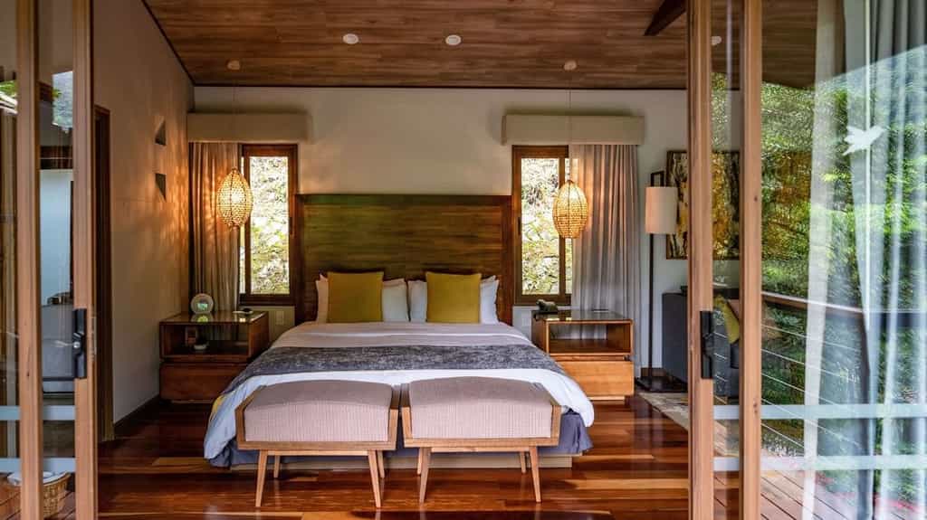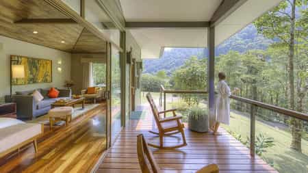 Dotted along the hillside, there is a variety of suites and villas, all of which enjoy equally dreamy views of the cloud forest, river and mountains. The interiors are unpretentious with stream-lined wooden detailing, pillow-top beds and a supply of Cafe Britt coffee. The highlight is undoubtedly the alfresco stone hot tub, kept completely private by a wall of bamboo reed - a post-hike soak is perfection. The two or three-bedroom villas have additional spacious living and dining areas, while the riverside villa boasts two whirlpool hot tubs and kitchenette.