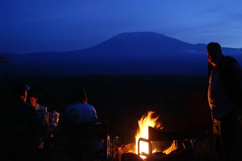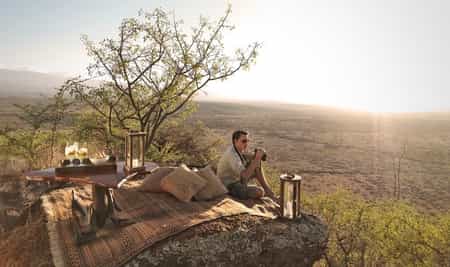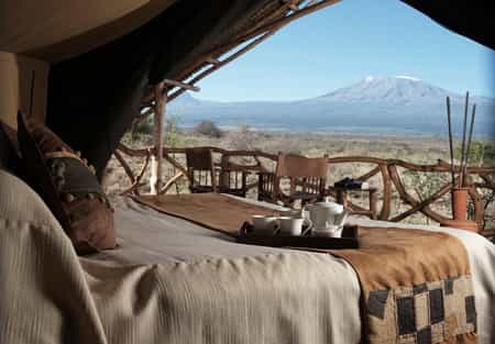 The camp currently has 12 luxury en-suite mountain-facing tents and five larger lodge-style suites, the latter with deep tubs as well as showers. All are elevated, and have superb interiors. (You know you're going to sleep well when the mattress is deep and the duvet defines snuggly.) Beyond sliding doors, your private veranda overlooks the plains and Amboseli National Park, and Kili's heights. Your bathroom-with-a-view is built of natural rock and acacia wood, and solar-powered hot running water is standard.