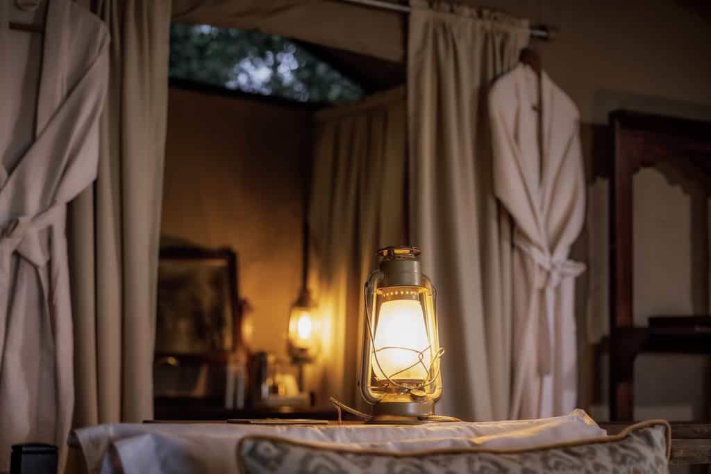 The camp is dismantled for a few months each year to preserve the ecosystem, and there are no permanent structures like pools or gyms. You can't charge batteries in your tent either – solar power is managed centrally in the library tent.