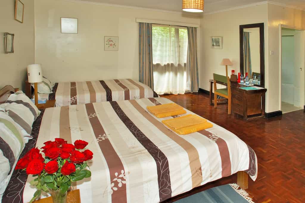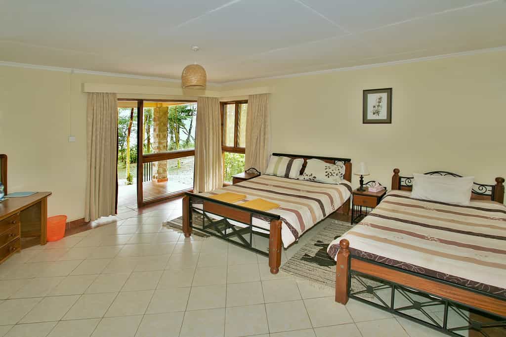 Guests have a choice of accommodation, either in the Joy Adamson Room in the main house, or in four basic and comfortable garden cottages that can accommodate families if required. The rooms are simple, spacious, and retain many of the original furniture and personal items owned by the Adamsons, creating a mood both homely and historical. Each has an en-suite bathroom, and the cottages have a small private patio area.