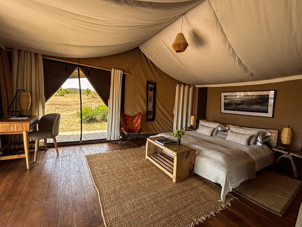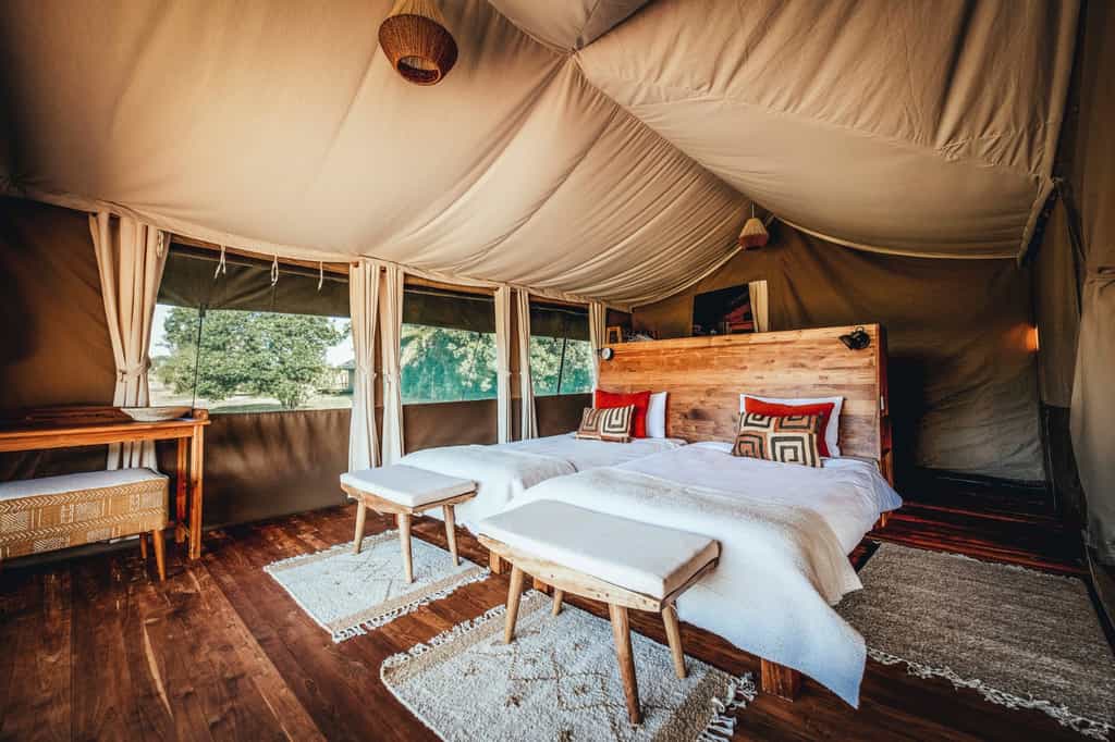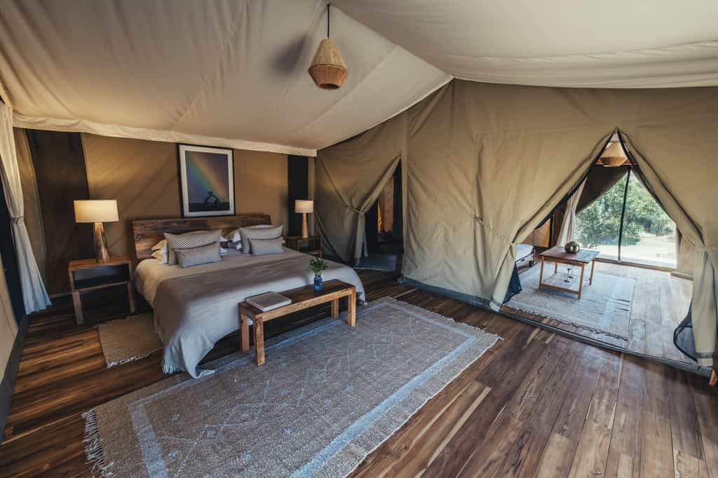 Enkewa has 8 luxury double tents and 1 Family Tent. All tents are fully insect-proof, with en-suite bathrooms and a flushing toilet, running cold water and hot safari showers. A strategic placing of the tents has been carefully chosen according to a geobiology analysis (magnetic fields and radiations) which will contribute to a better sleep. As per our eco-friendly ethos we exclusively use solar energy – provided 24 hours- so we can avoid use of generators or pumps that might interfere with our guests’ rest.