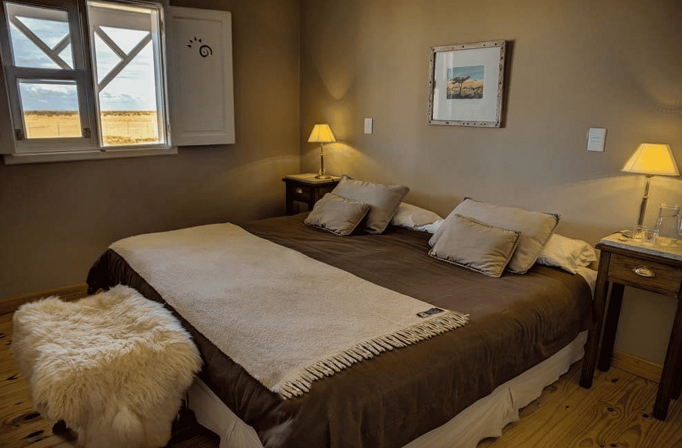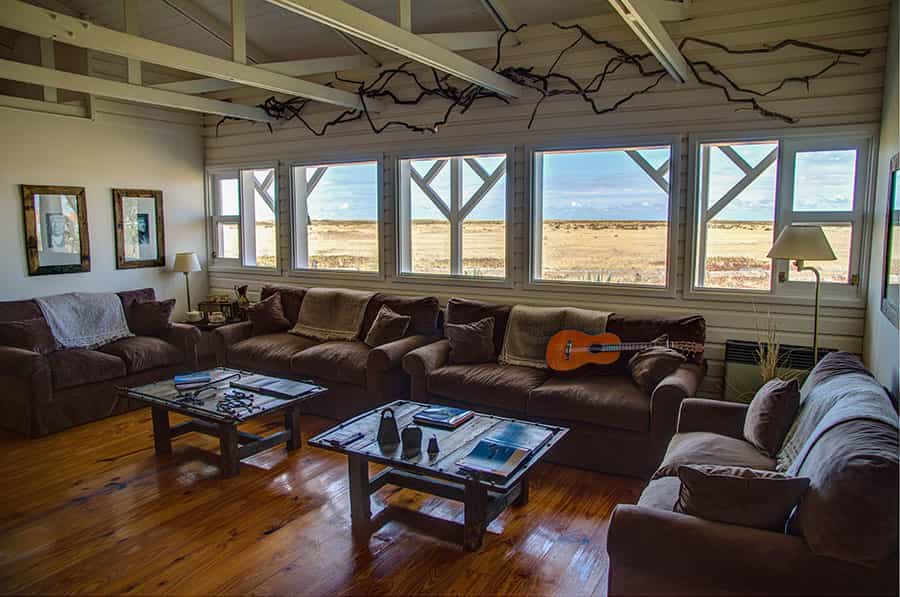 The estancia prides itself on being environmentally sustainable (solar panels and windmills – tick). Modelled on the original 19th-century farmhouse, the main area is a glorious mix of items collected by the family over the years including antique tools, framed maps, seashells and books. The dining room and lounge are simple and homely with a crackling open fireplace and views across the vast, arid steppe. At meal times you'll enjoy family recipes and Patagonian dishes including hearty stews and barbecued lamb, all accompanied by delicious Argentine wines.