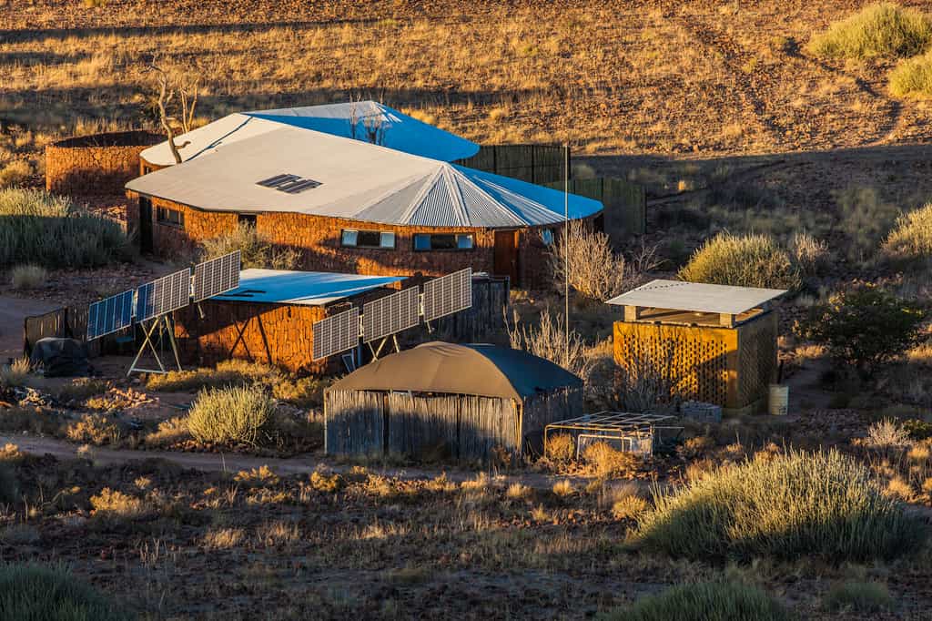 Simple, fresh and wholesome meals are prepared using solar power or on fires and are served communally in the open-sided central dining area, furnished with a long table, directors' chairs and an overhead fan. The seating area is huge, with stone walls, an open bar and strategically placed seating areas facing the views.