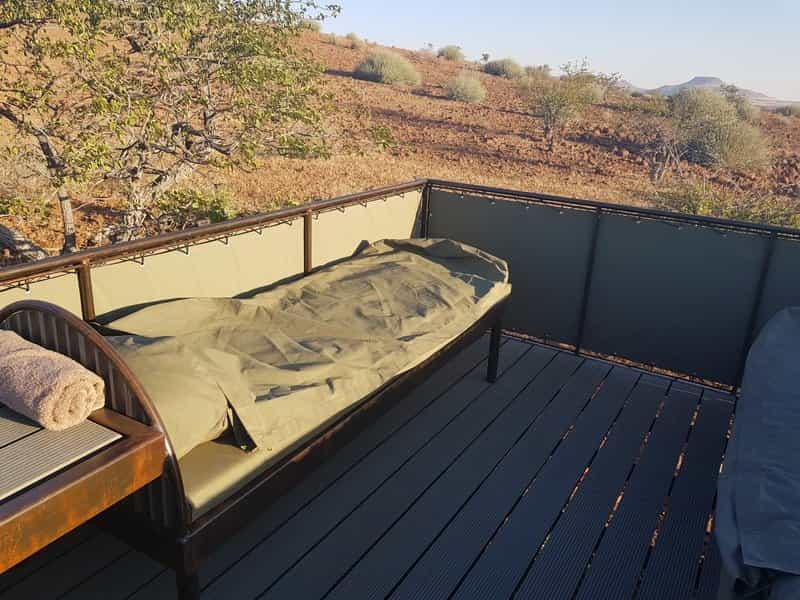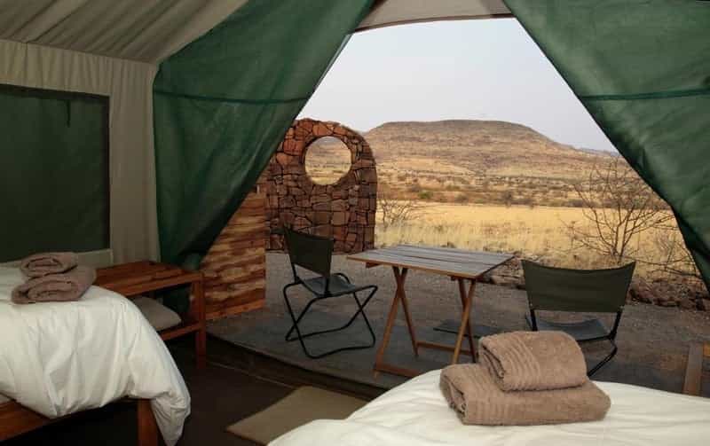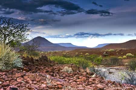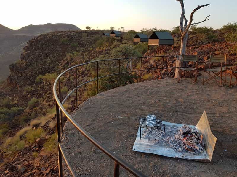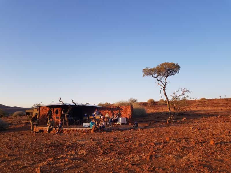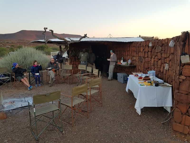 On an expedition like this, there is no 'lodge' to speak of and instead, your base changes location each day. River Camp gazes out across a waterhole, where thirsty and curious wildlife come to visit, whilst Hill Camp sits on a mountaintop, surrounded by crystals, rock formations and rugged scenery. Breakfast and lunch are enjoyed along the way (usually under the shade of a tree) and, after stunning sundowners, dinner is cooked over an open fire as your guide shares the legends of Damaraland...