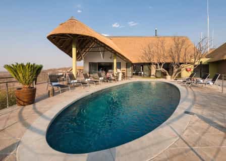 The main lodge has a beautiful position on an elevated platform overlooking the plains, with a large swimming pool and shaded sun terrace running the length of the deck. Inside, there's an elegant dining room (the food is superb), cosy lounge and bar, and a sunken air-conditioned wine lounge with huge windows offering views to the horizon. Outdoors, the circular stone fire-pit is a wonderful place to enjoy a sundowner or two before dinner under the stars. Wi-fi available.