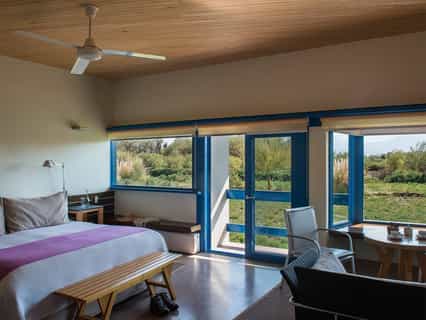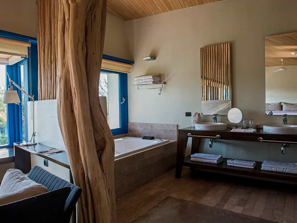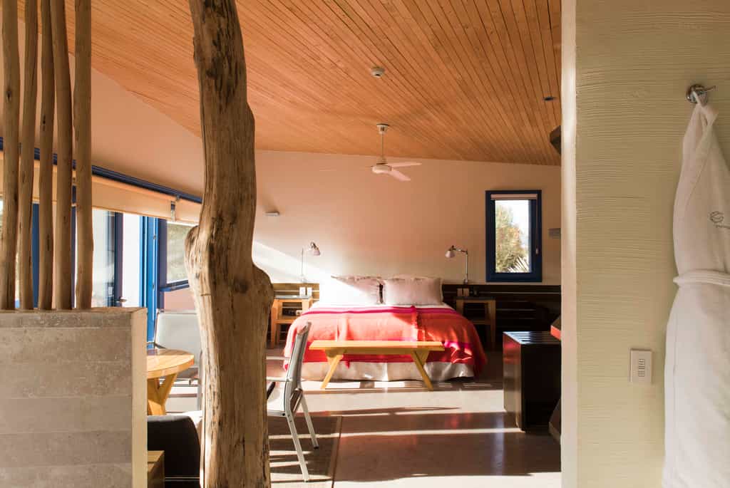 With their sandy tones, whitewashed brickwork and wooden decor, the rooms feel homely and authentic. Each enjoys views of the gardens and desert through wide windows (the panes are painted a bright, cheerful blue too), and a King-sized bed, ceiling fan and en-suite bathroom with bespoke toiletries, a shower and whirlpool tub. There are four suites, which have larger hot tubs and their own balcony to enjoy a full sense of the privacy and space. Explora is a hotel to reconnect with nature, so there is no TV or WiFi in the rooms.
