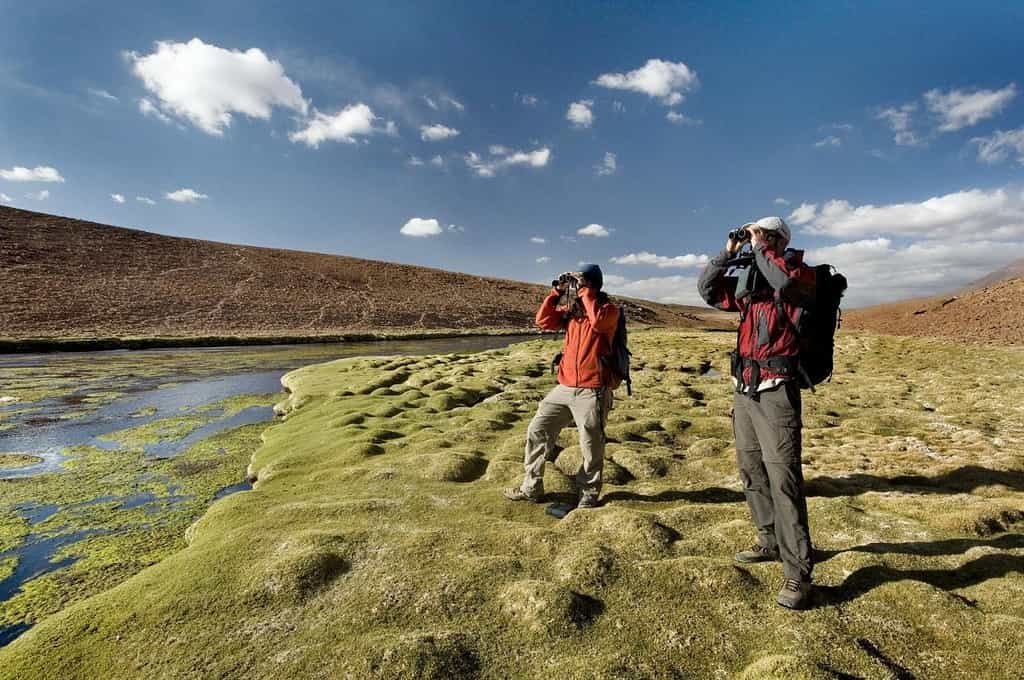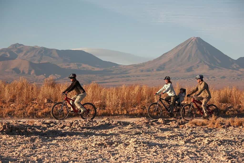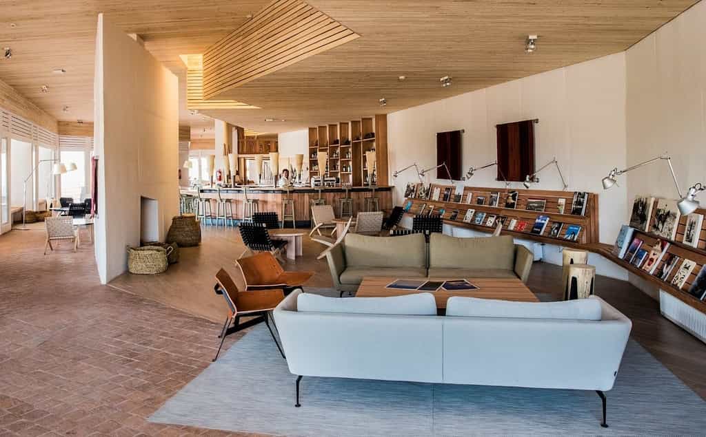 Taking inspiration from indigenous desert homes, the hotel has rugged adobe walls, punctuated by huge windows to enjoy the view of soaring mountain peaks and the Andean high plains. The interiors are fresh and cosy with light wood, comfy sofas and low-slung, plaited chairs. Breakfast is a spread of pastries, fruit and eggs to order, while haute-Chilean-cuisine is served at lunch and dinner, accompanied by a glass of red or white (Chilean, of course). The Explorer's Bar is a convivial spot to chat and await the briefing for the following day's adventures.