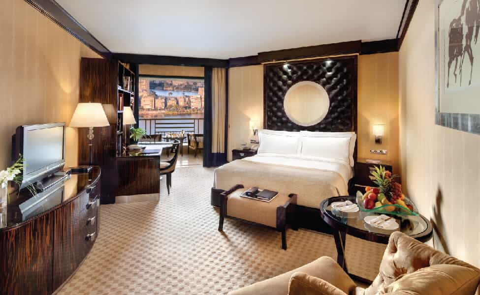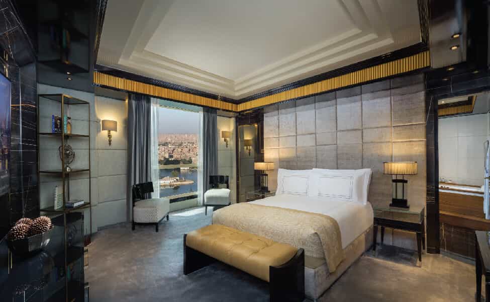Sophisticated sanctuaries blend Art Deco flair with contemporary Egyptian cotton comfort. The open-concept bathrooms with sliding shutters are properly clever – soak in your marble tub whilst gazing at the Nile, then slide the shutters closed for privacy. Rainfall showers, interactive TVs, and Nespresso machines handle the practical bits, whilst rich textures and elegant furnishings in cream and gold tones create that luxe hotel feeling. Signature rooms add private terraces for the ultimate in river-watching locales.