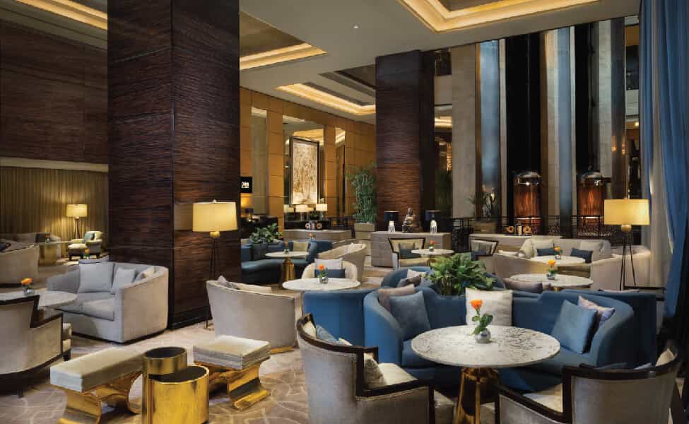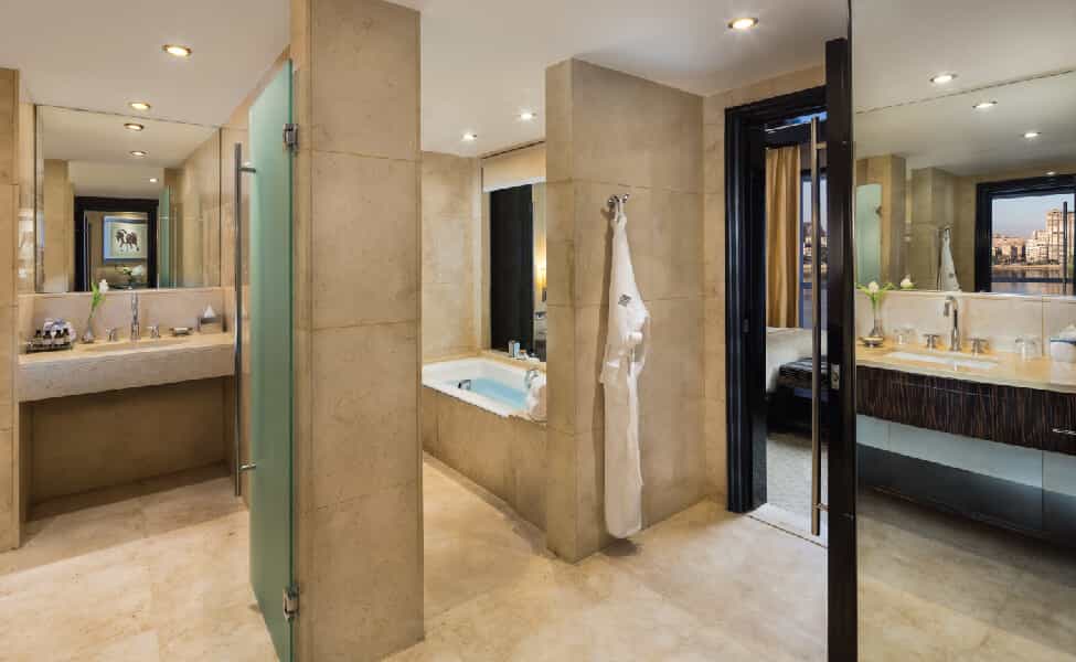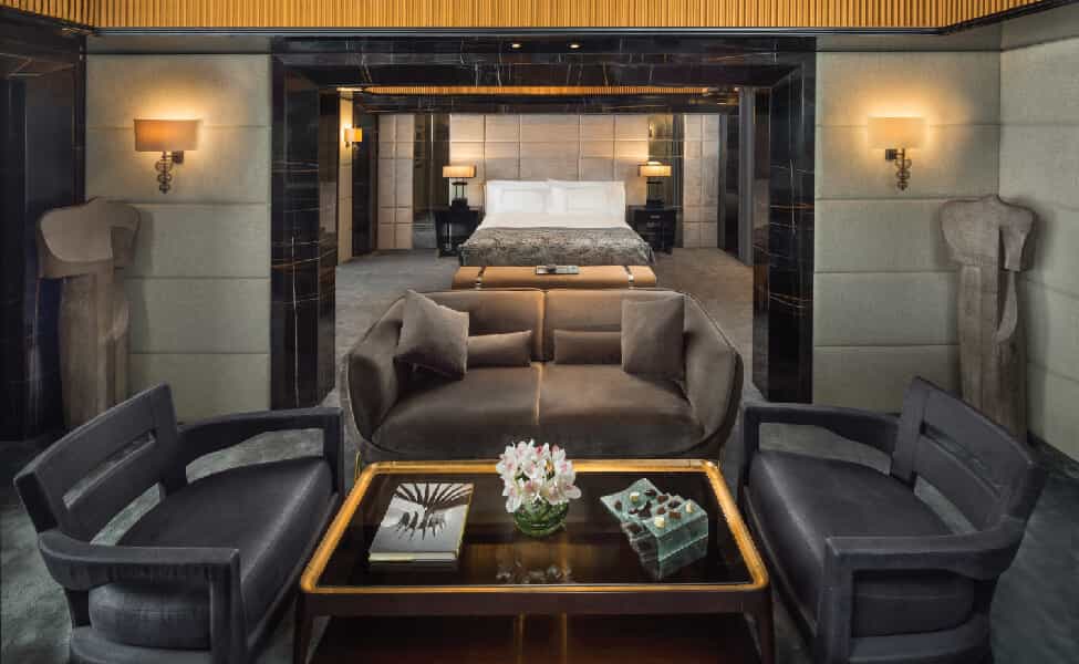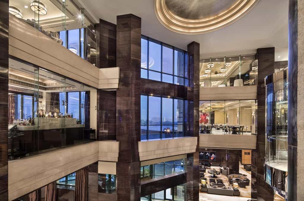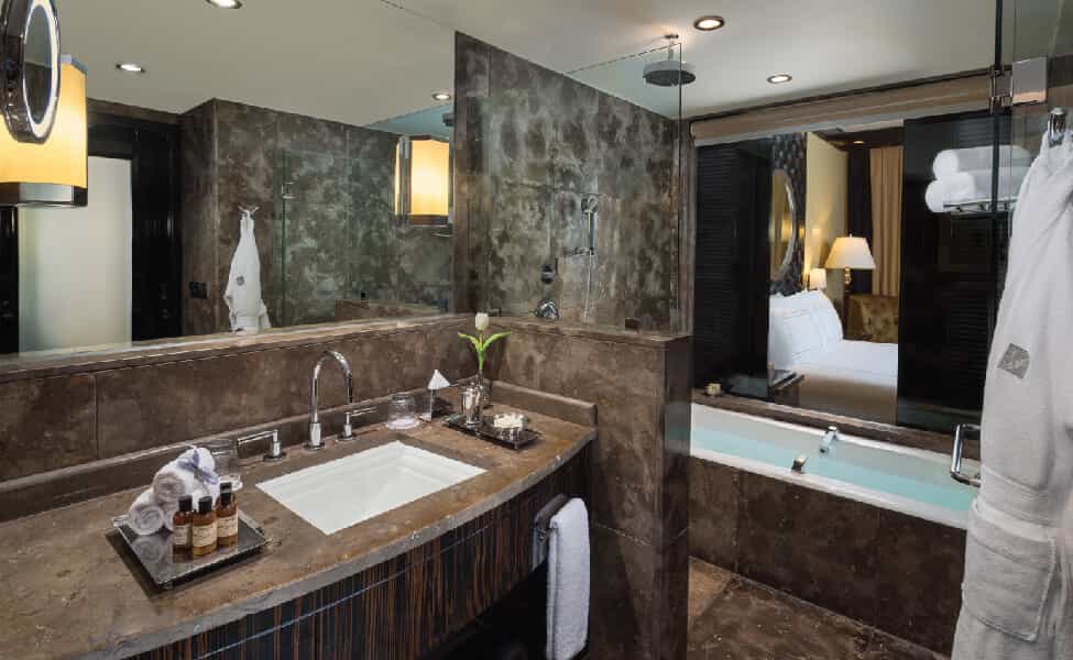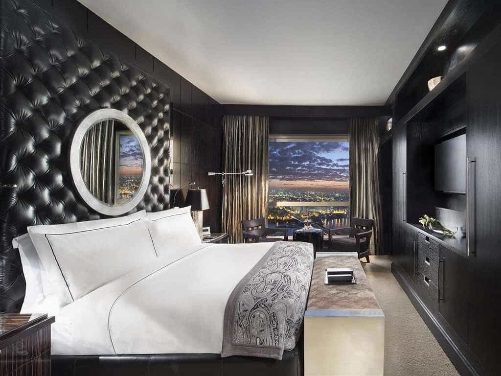 This polished marble playground channels serious Art Deco glamour with its black-and-cream palette and mirrored accents. L'Uliveto's Italian elegance contrasts beautifully with Saigon's moody Asian fusion atmosphere, whilst the lobby's soaring glass elevators add a touch of theatricality. The rooftop Sky Pool steals every sunset, and the Willow Stream Spa wraps you in desert-inspired tranquillity with its sandy hues, Turkish hammam, and ice fountains. Seven dining spots ensure you'll never get bored of the food offerings.