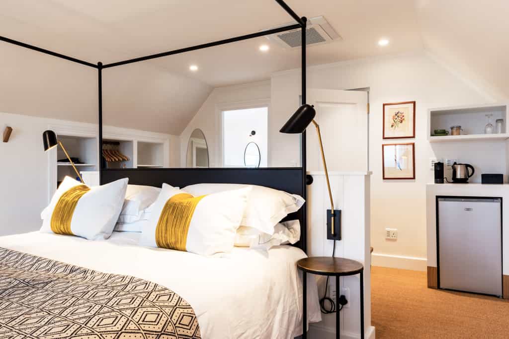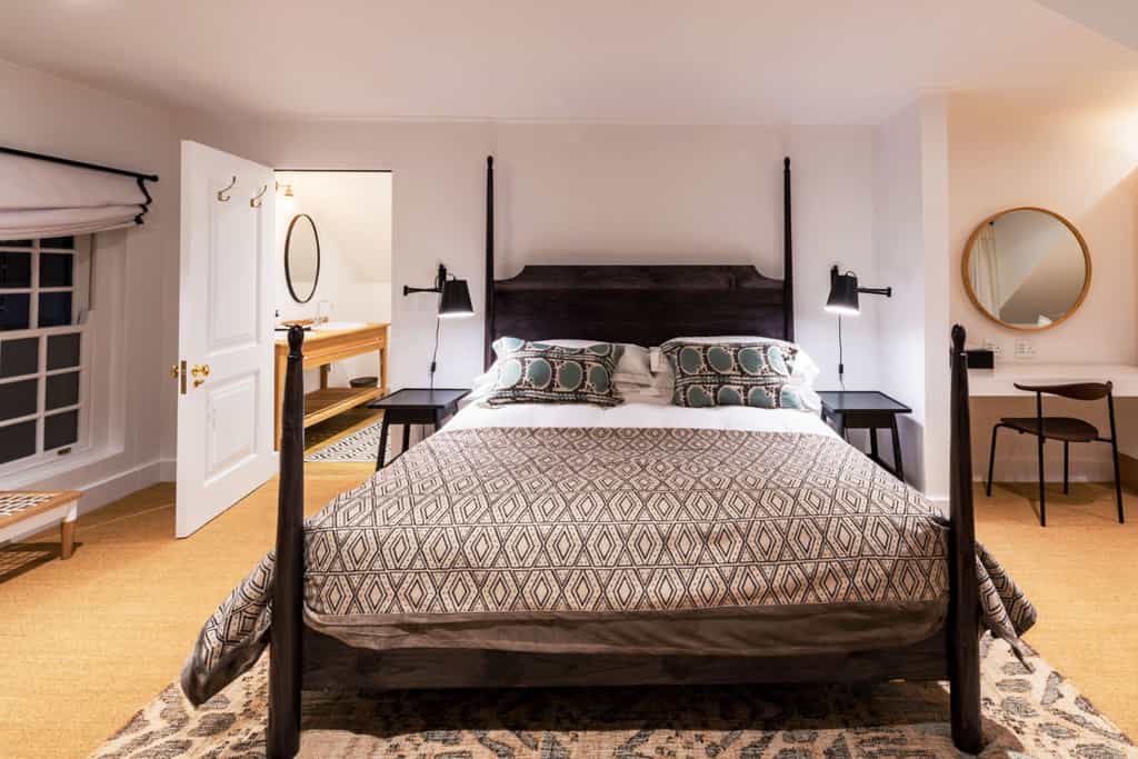 Fairview has the option of rooms in the Main or Coach House. The style is Scandinavian and minimalist with a cool grey palette (punctuated by bursts of yellow or powder blue decor), textured wooden furnishings and plush, patterned rugs. In the Main House, luxury rooms enjoy a balcony with sweeping views while the garden rooms in the Coach House offer private verandas leading onto manicured lawns. The air-conditioned rooms all have a snug sitting area, en-suite bathroom with marble countertops, shower and handmade ShweShwe robes (some have a freestanding tub) and TV. The Deluxe Suite also enjoys an adjoining children's room.
