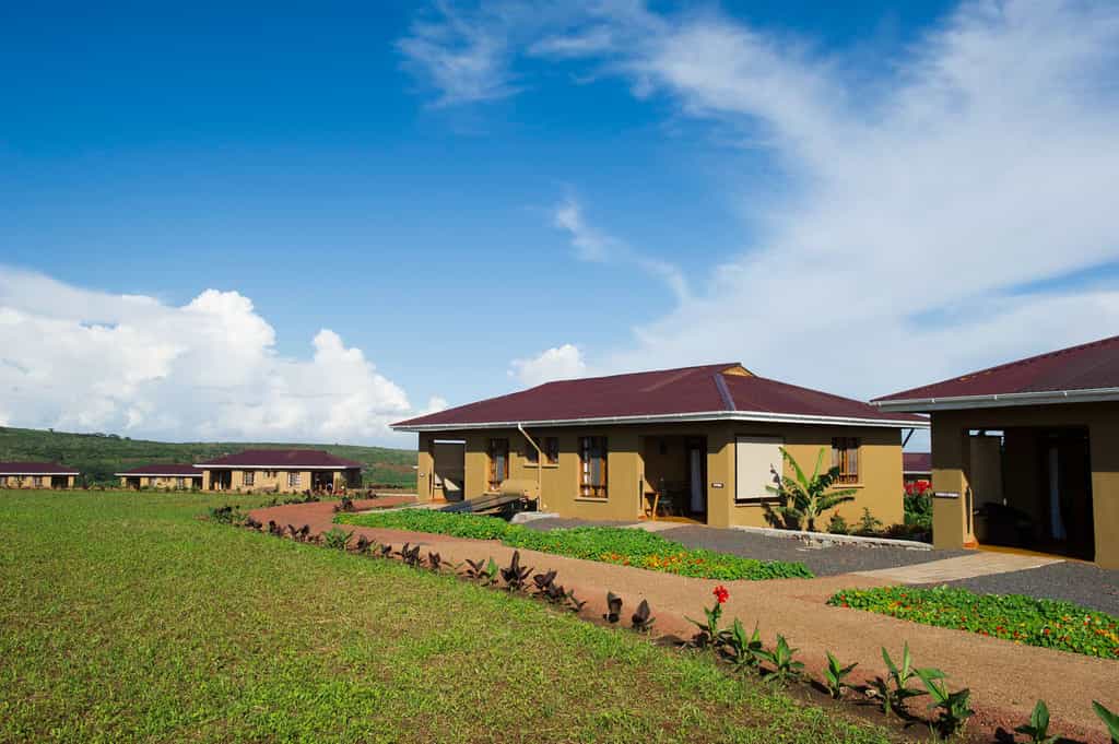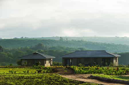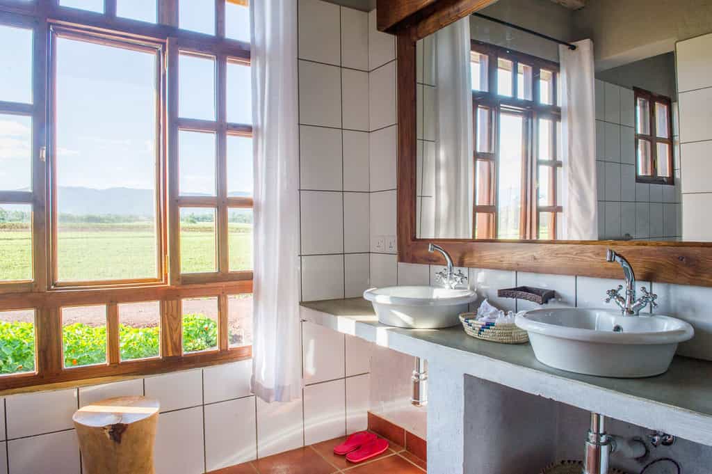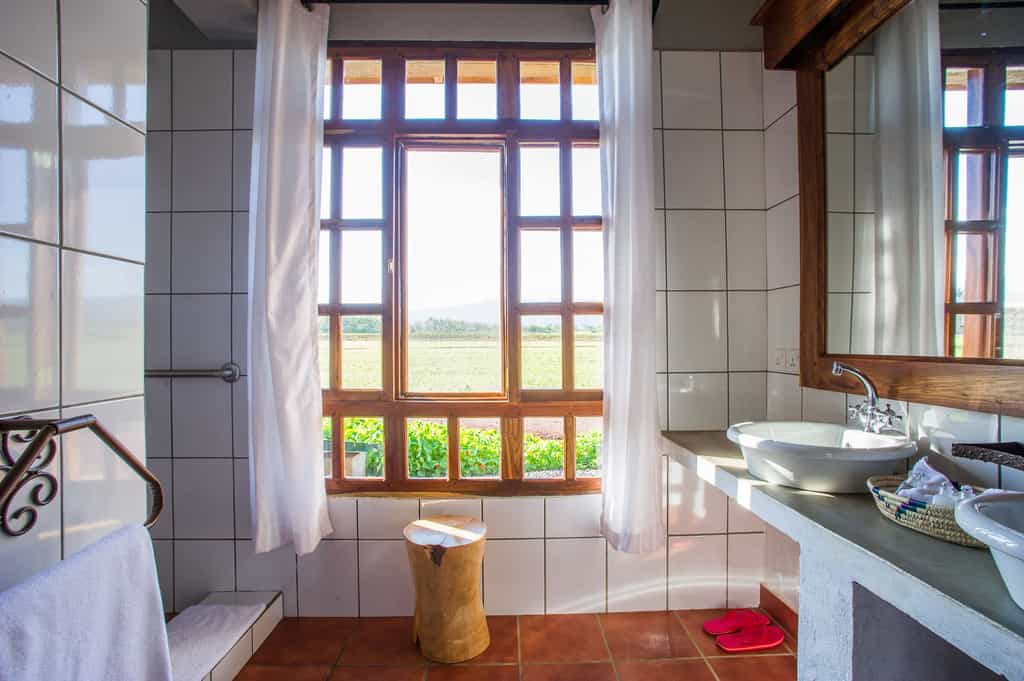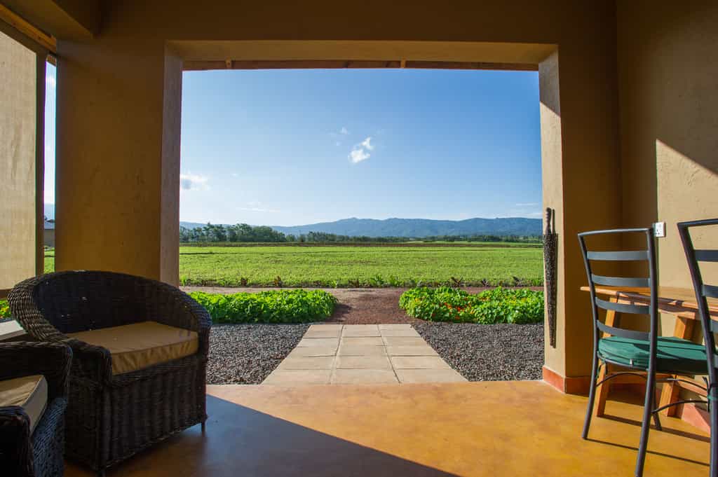 The rooms have the same simple but quirky style as the rest of the lodge. With twenty-six half-villa-style suites and two family suites, there’s plenty of room to go around. All are en-suite with built in showers and dreamy views of the fertile farmland and the blue-tinged mountains beyond. Guests can choose from double or twin beds, which are all equipped with mosquito nets to keep your sleep as peaceful as the surroundings.
