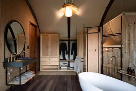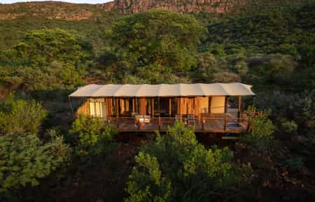 At Few & Far Luvhondo, we offer six uniquely designed tented Cliff suites that blend luxury with the raw beauty of the African wilderness. Each suite is meticulously locally handcrafted to provide an unforgettable experience. Each Cliff Suite features a luxurious king bed, with up to two additional roller beds available for children, ensuring comfort for families.