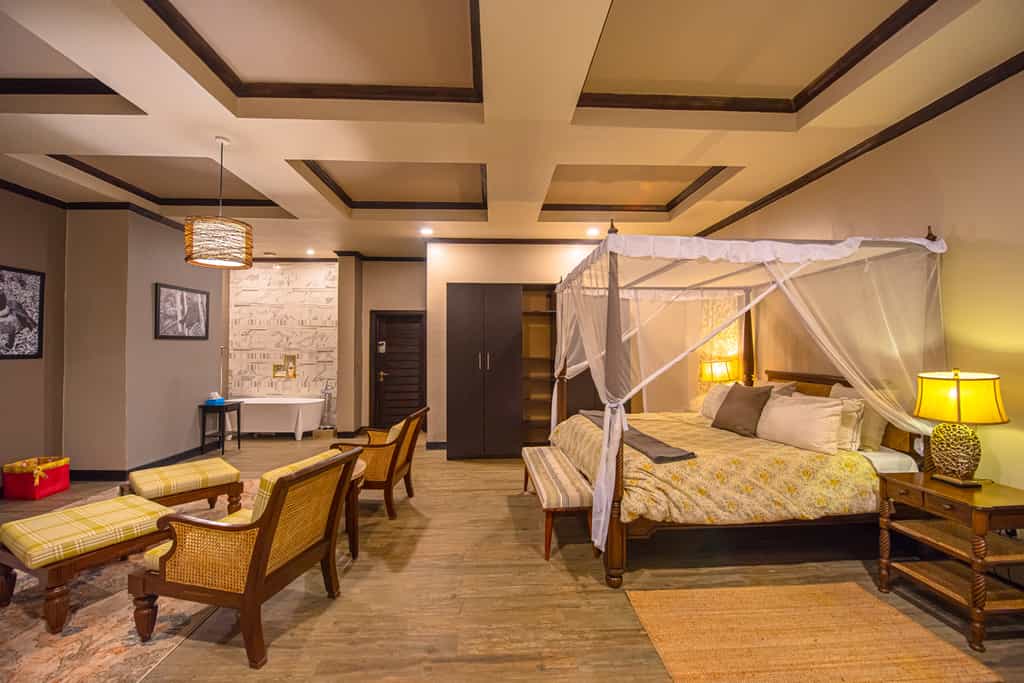 The 11 double/twin bedrooms are decorated in that reassuring comfort-meets-luxury style. Arranged into smaller blocks throughout the garden, they have solar-powered lamps (in case of power cuts), mini-bars, tea/coffee-making facilities, and wi-fi (although signal is better in the main area). En-suite bathrooms have hot showers, toiletries, slippers and dressing gowns. Seven deluxe rooms have more space, plus heating, aircon and satellite TV. The pretty two-bedroom cottages are ideal for families, with a semi-private garden area with hammocks and chairs.