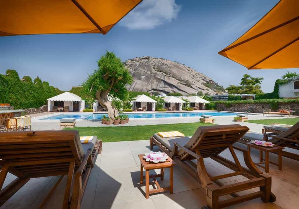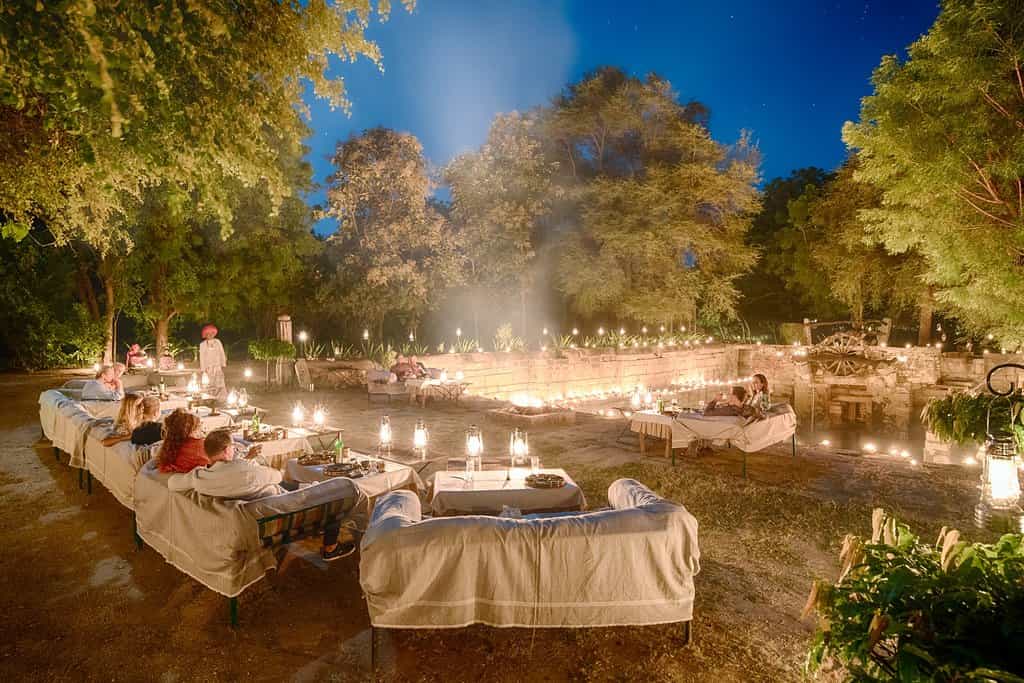 Your activities at Fort Rawla have to begin with a trek up Elephant Hill, named after the white stone tusker on top. It takes 700 steps to climb this granite monolith, exploring cave temples on the way up, and enjoying an amazing view of the sunset at the top. Explore the countryside with a ride on the resident Marwari horses, leopard spotting drives or a nature walk into the foothills of the Aravali Range. Enjoy a tour of Narlai village and visit the serene Adinath Jain Temple, or tuck into afternoon tea at Sali Bandh dam with birdlife galore.