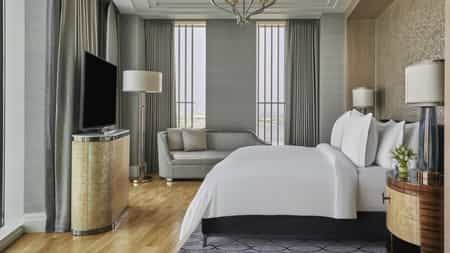 Perched on a collection of more than 200 islands, our cinematic capital city isn’t afraid to stand out – and that’s just the way we like it. With its distinctive exterior of vertical lines inspired by the colourful textiles of the souks, you’ll find our 34-storey Hotel on Al Maryah Island a high-end playground for business, shopping and entertainment. Mingle with fellow travellers and stylish locals in our elegant Al Meylas lounge, find your bliss in The Pearl Spa & Wellness Abu Dhabi, or explore The Galleria – Abu Dhabi’s most refined new shopping centre – without ever having to step outside.