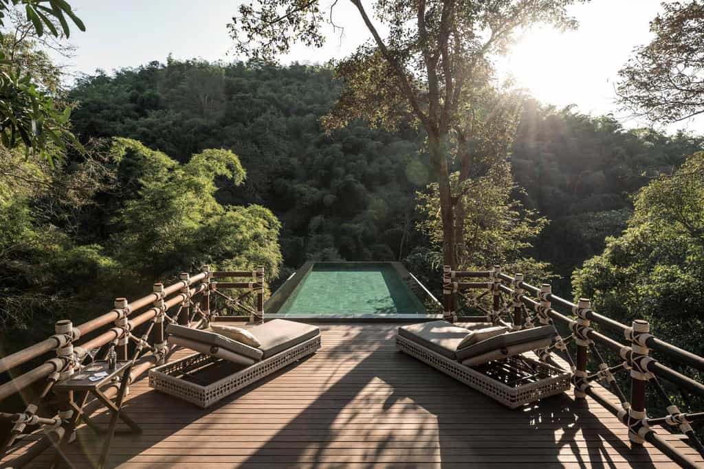 The focus here is the interaction with rescued and rehabilitated elephants in the nearby sanctuary and meeting the mahouts. Otherwise, there's a big focus on exploring the surrounding (stunning) landscapes: hiking the epic forests, visiting local hill tribes, fishing, cookery classes, and even visiting neighbouring Myanmar and Laos for an epic, three-countries-in-one-day expedition. Closer to home, there's a spa where treatments take place to a soundtrack of local birdlife, and yoga and meditation sessions can be arranged.