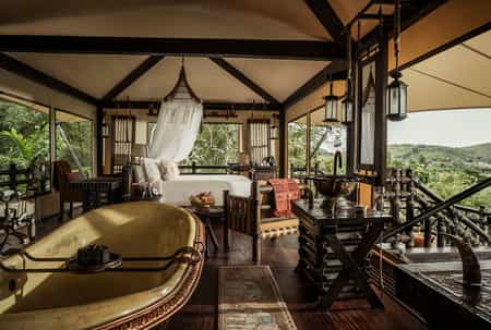 There are 15 luxury tents to choose from, all spread out along a jungle-clad pathway. Each is beautifully decorated in natural woods and carefully-chosen leather pieces, creating an opulent, modern take on 19th-century safari style. All have air conditioning, mini bars (fully - and we mean fully - stocked) and entirely fabulous views. Soak in a hand-hammered roll top tub, luxuriate in an outdoor shower and recline on your private outdoor deck. For the ultimate treat, book a deluxe tent and enjoy a private hot tub too. For larger groups, check out the two-bedroom Explorers Lodge, private retreat at the far end of the camp.