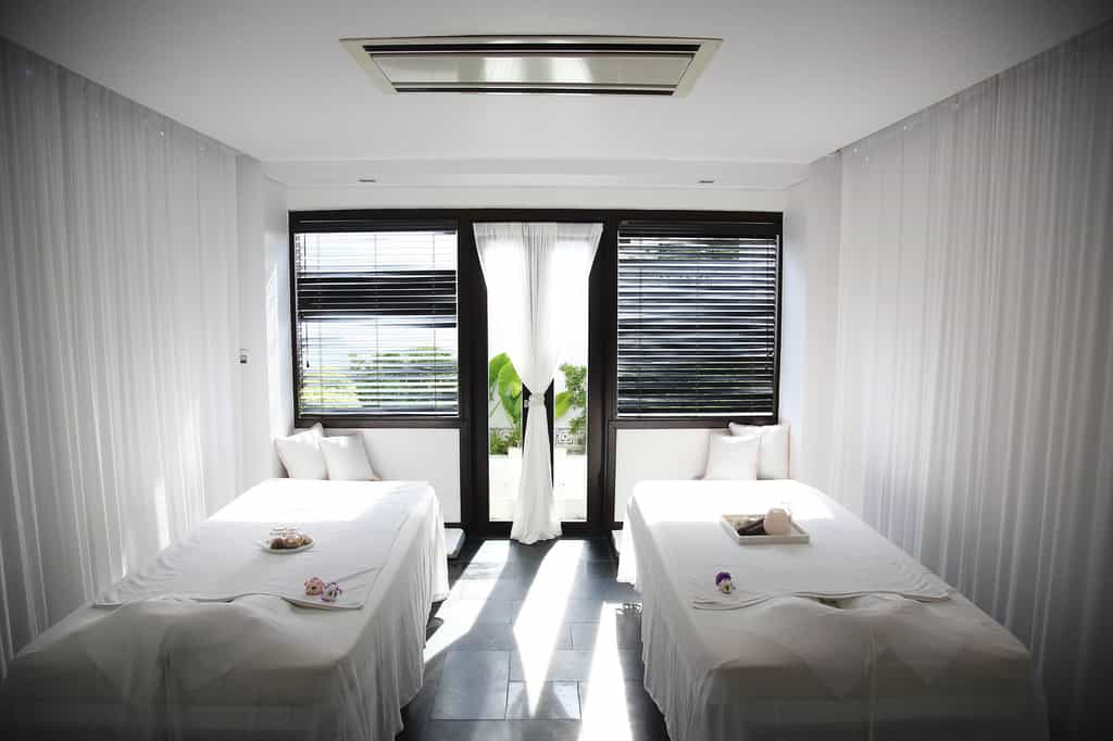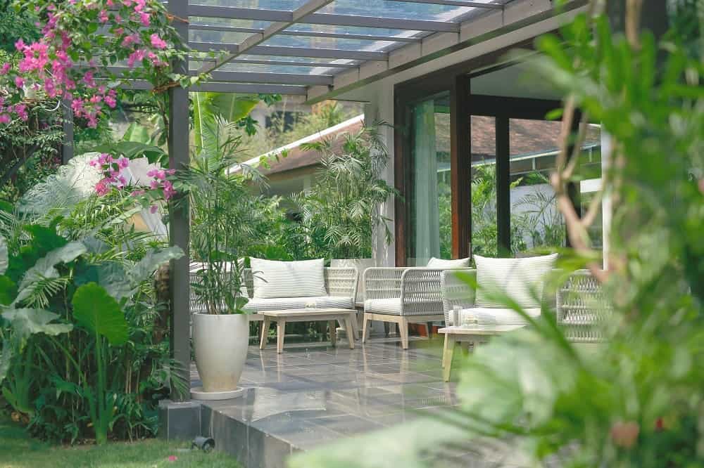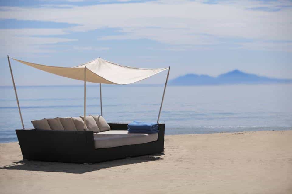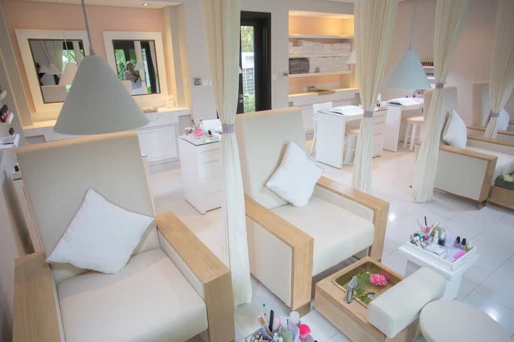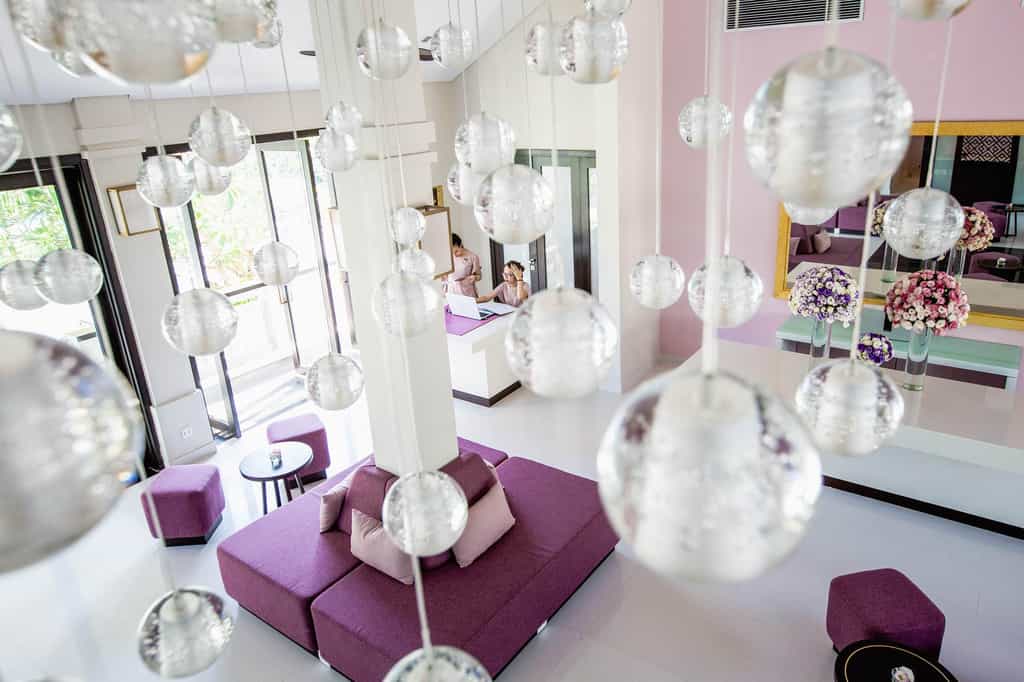 Strewn across the tropical gardens, there are 87 villas donning shades of purple and cream. Sliding glass doors open to reveal shaded loungers and a black granite pool. With similar interiors, there are also a number of bungalows divided into deluxe rooms. The style is fresh and bright, and each has a feather-soft bed and spacious sitting area, while the larger villas also feature a dining area and kitchenette. The bathrooms are sleek and glossy with large mirrors, a sunken bath and TV to watch while you soak.