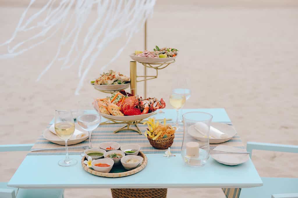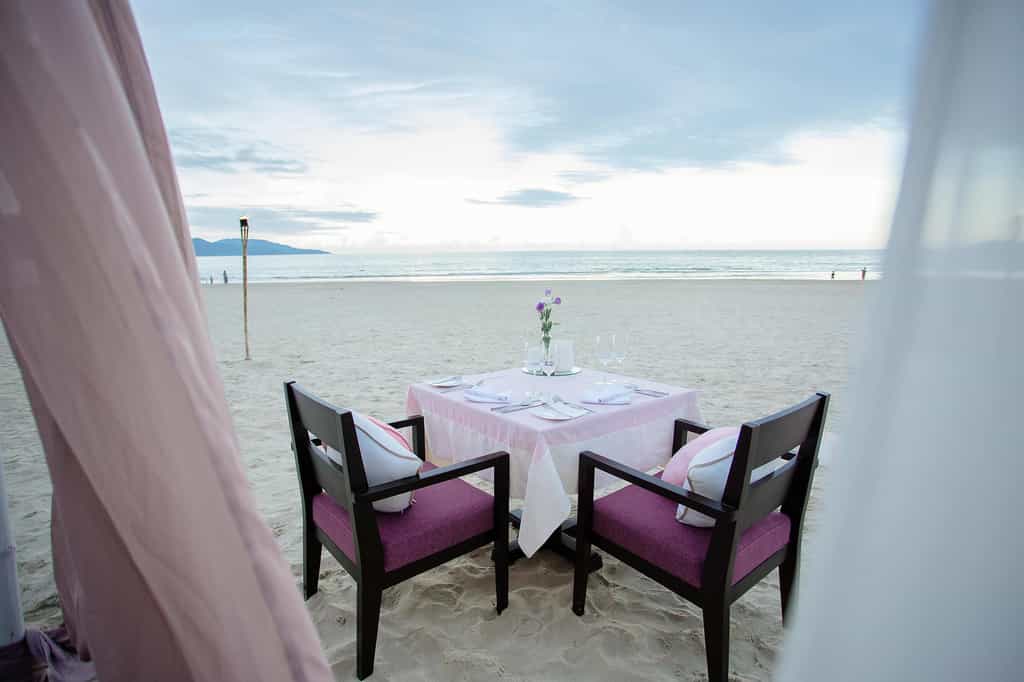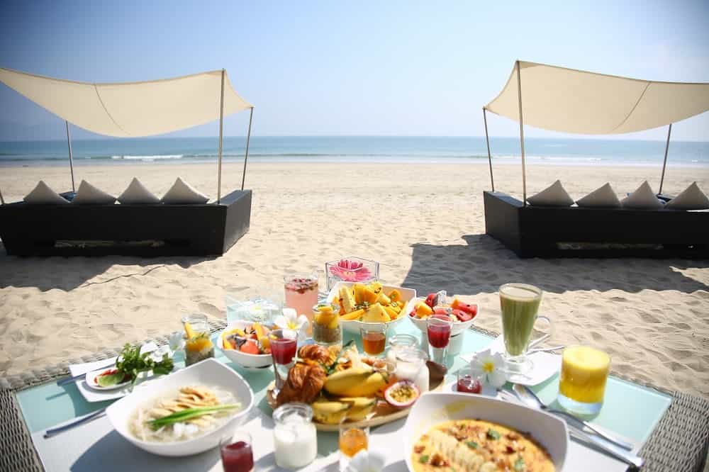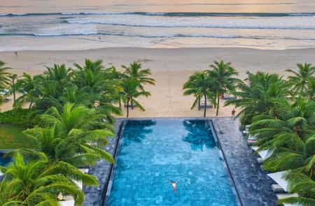A stone's throw from the sea, the glassy pool makes for a refreshing dip with chunky fruit cocktails to sip on afterwards. Along a palm-fringed pathway, Five is named after the number of elements believed to make food delicious and serves up its own selection of Vietnamese delicacies. The aptly-named Fresh is a funky spot with a menu of comfort foods - it's not a bad place to enjoy the sunset either. Let the mixologists whip you up a tropical daquiri at Tonic where purple lanterns hang like jellyfish.