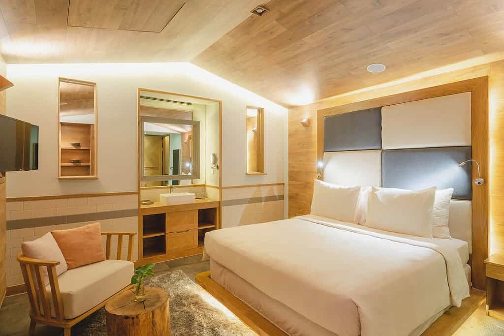 Muted hues and light woods make the Fusion Suites a charming respite from the busyness of the city. All are furnished with a linen-clad bed, rustic wooden tables and lots of plush rugs. Corner suites enjoy 180° views through floor-to-ceiling windows, a spacious lounge, kitchenette and deep, boatlike bathtub. Some suites are open-plan while others have two bedrooms (the second has bunk beds for the kids). Other amenities include a coffee/tea maker, minibar and unlimited Wi-Fi.