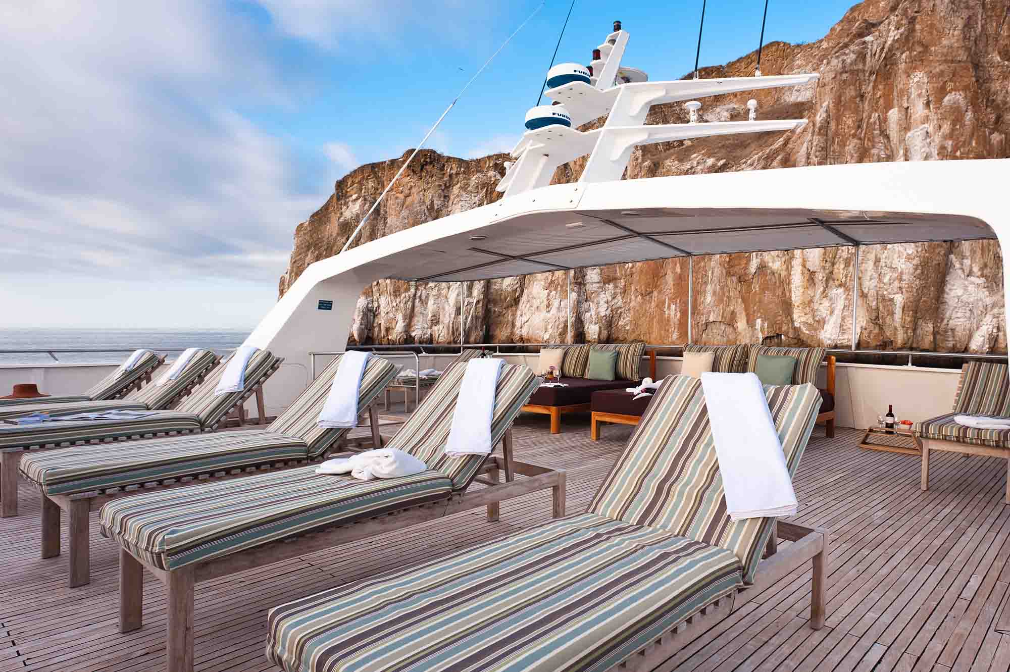 On board, the naturalist guides offer lectures in the lounge where you can brush up on your Galapagos knowledge, and the chef hosts cooking classes. Your itinerary will determine which islands you visit, but there will be ample time for kayaking, hiking volcanic terrain and snorkelling amongst tropical fish, seahorses and sharks. Walk along vermillion-coloured beaches, spot Darwin's birdlife and track tortoises in the highlands. And if you can't decide, book a two-week-long trip and you'll see and do it all!
