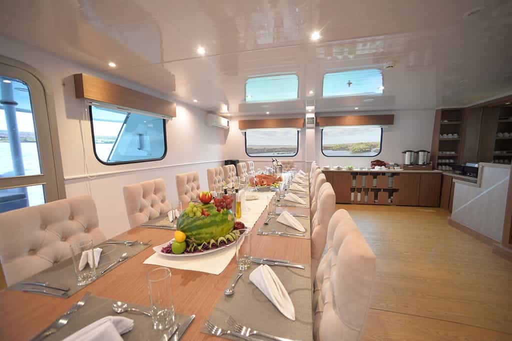 The vessel's shallow draft makes it possible to venture into the secret nooks and crannies of the Galapagos with ease.
