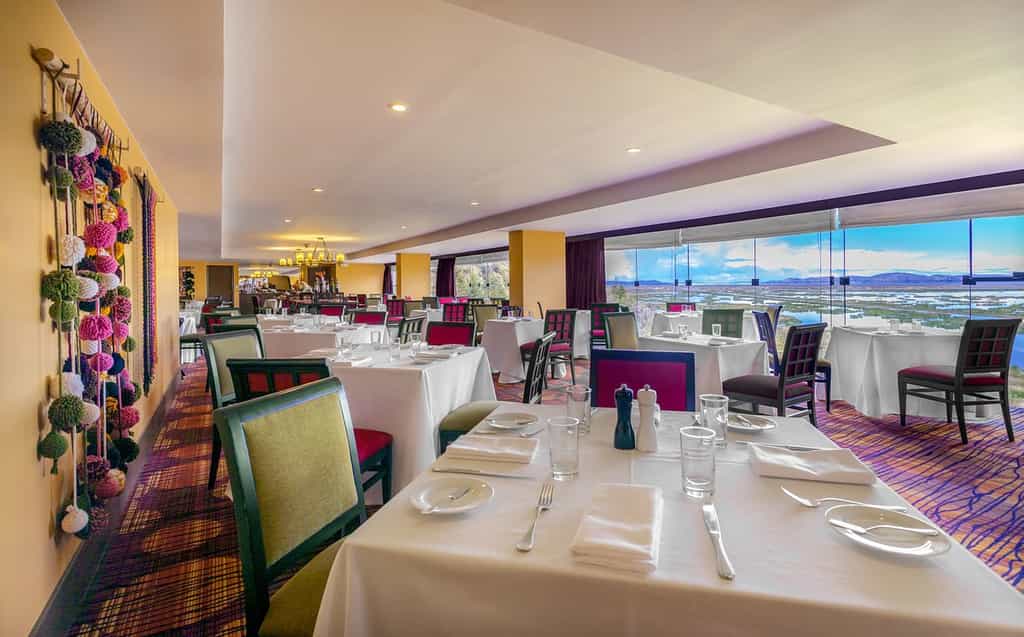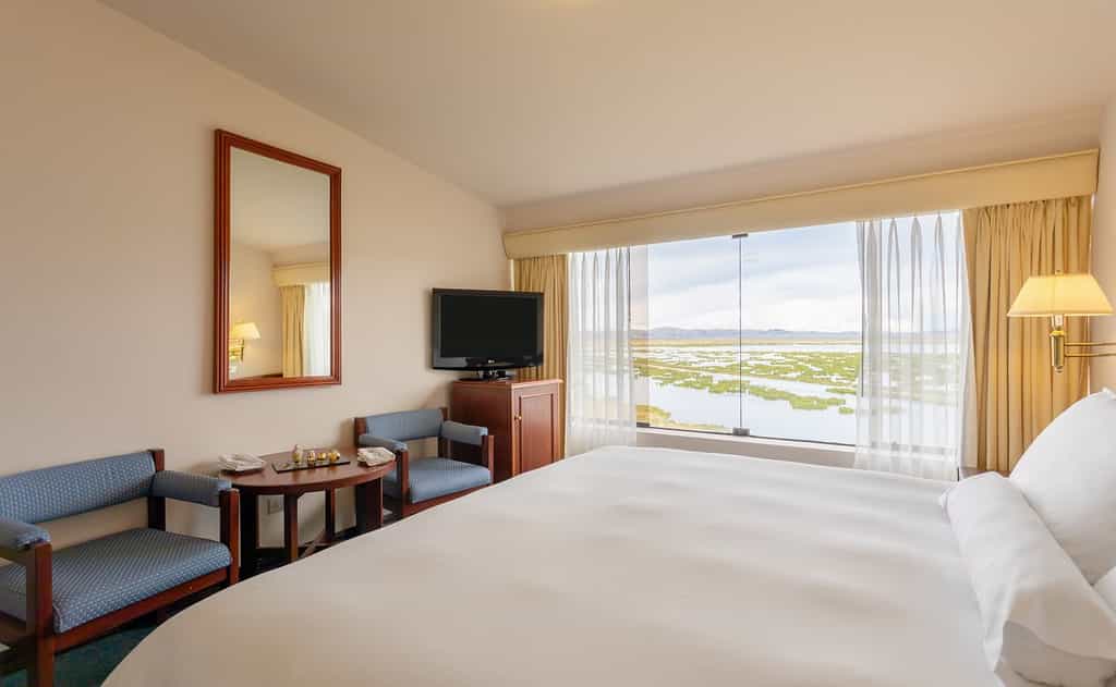 The hotel has over 120 rooms, all specially designed to offer bright and welcoming spaces for waking up to those serene Lake Titicaca views every morning. Superior rooms have either twin or a Queen-size bed while the premium and junior suites are equipped with King-sized beds. All include a minibar, TV and first-class bathroom amenities. Some rooms have sunrise facing views over the lake, while others have sunset views - make sure you pick according to your preference.