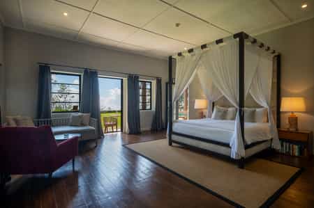 Four spacious rooms, all with garden views, private verandas and bathtubs — a combination that feels entirely right in the hills. Three are Concordia Doubles with king-size beds and a mix of hand-sourced antiques and custom contemporary pieces; the fourth is a twin, handy for friends or siblings who'd rather not share. One of the doubles interconnects with another, making it a solid option for families. All come with a heater rather than air conditioning — though at this altitude, you'll be grateful for the former and won't miss the latter.