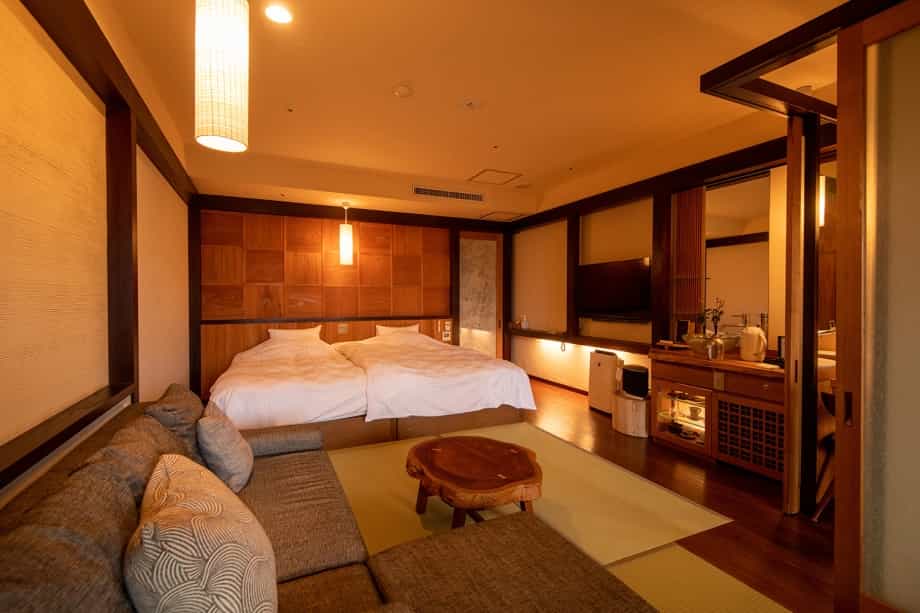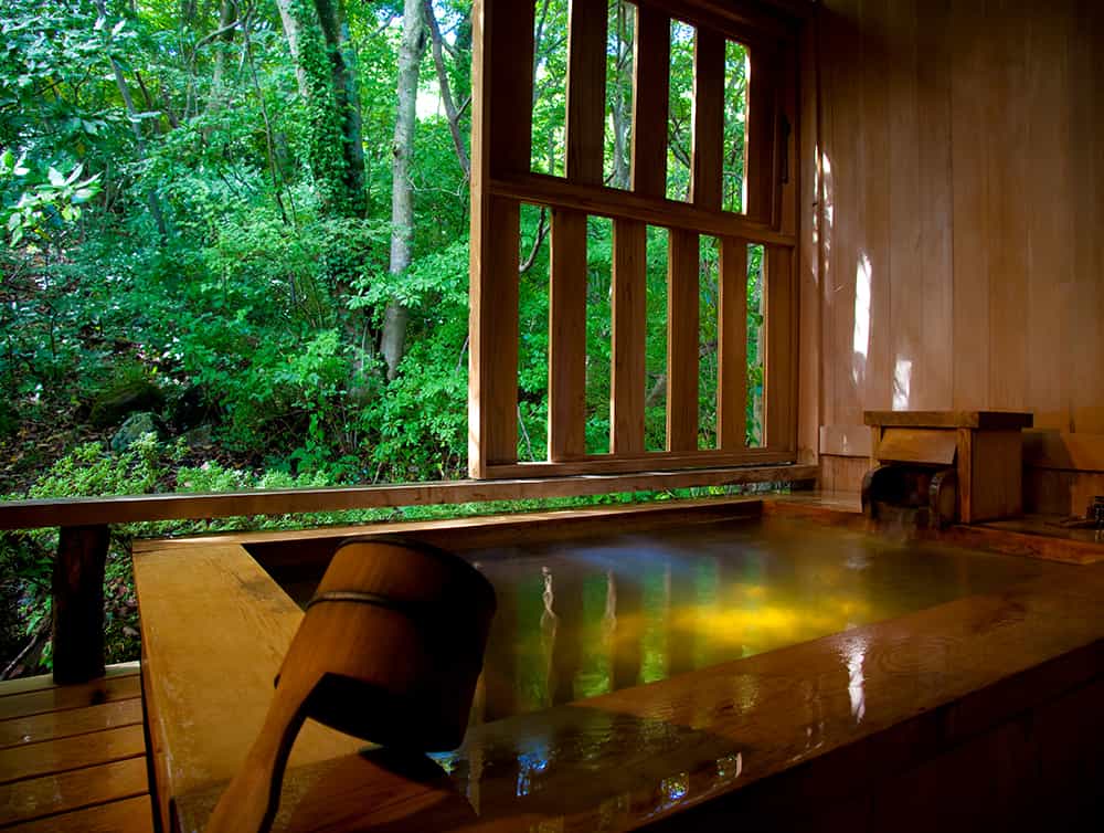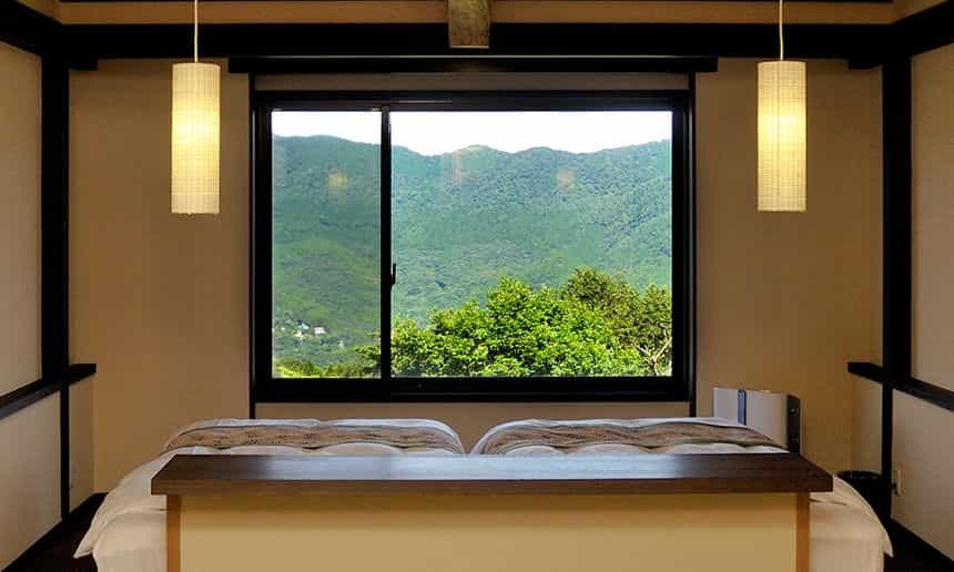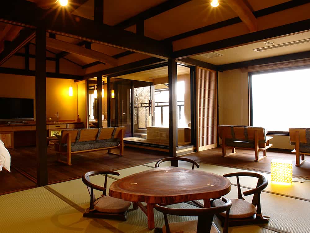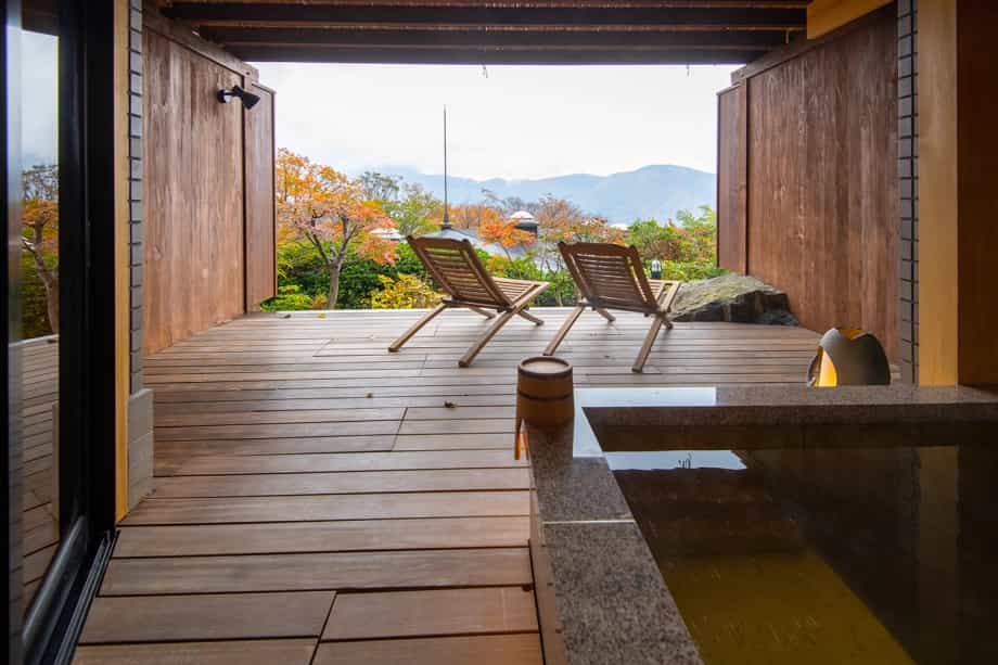 Gora Hanaougi invites you to spend a luxurious time enjoying the changing seasons of Hakone in your room or at the hot springs. The inside of the hotel is a comfortable space with the slight scent of trees. The tatami floor allows you to relax barefoot after taking a bath or having a meal. Gora Hanaougi is a 3-minute walk from Sounzan Station, the terminal point of the Hakone Tozan Cable Car. It is also convenient for sightseeing in Hakone.