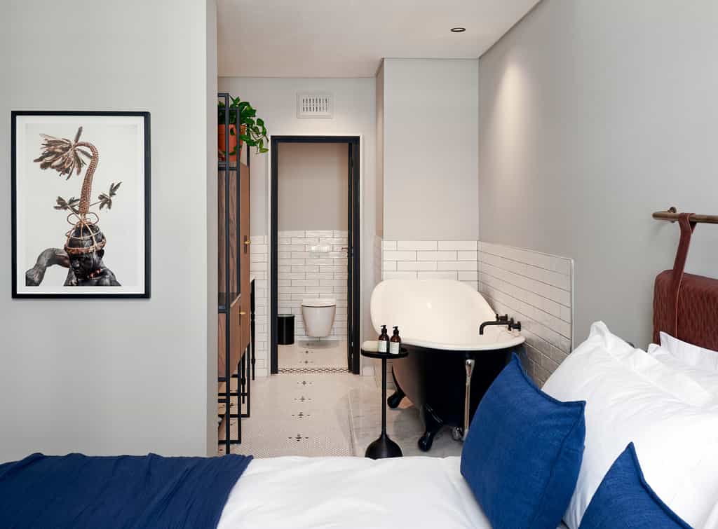 Best described as “Edwardian-elegance-meets-industrial-styling” (well, we did say that DesignHotels™ loves a good mash-up!), the hotel’s design is cool and sexy. Created as a showcase for South African design, the dark color palette provides a stylish backdrop for pieces from the likes of Dokter and Misses, and for the colourful floral carpets lining the hallways, whilst touches of blue and white work to soften the industrial elements. Another highlight is the reception area’s showcase of 1,800 painstakingly hand-painted ceramic tiles that together form a map of Cape Town.