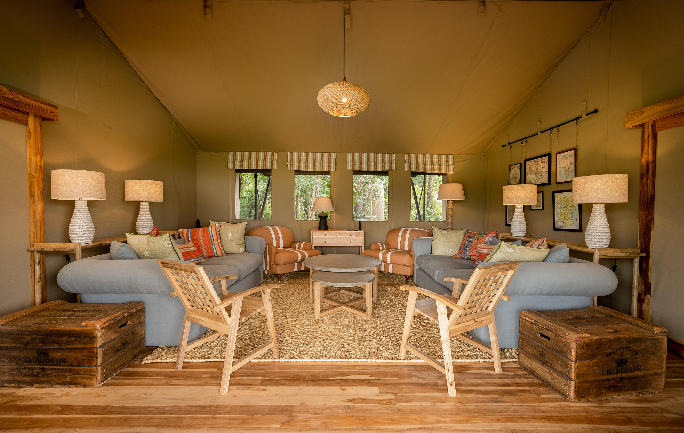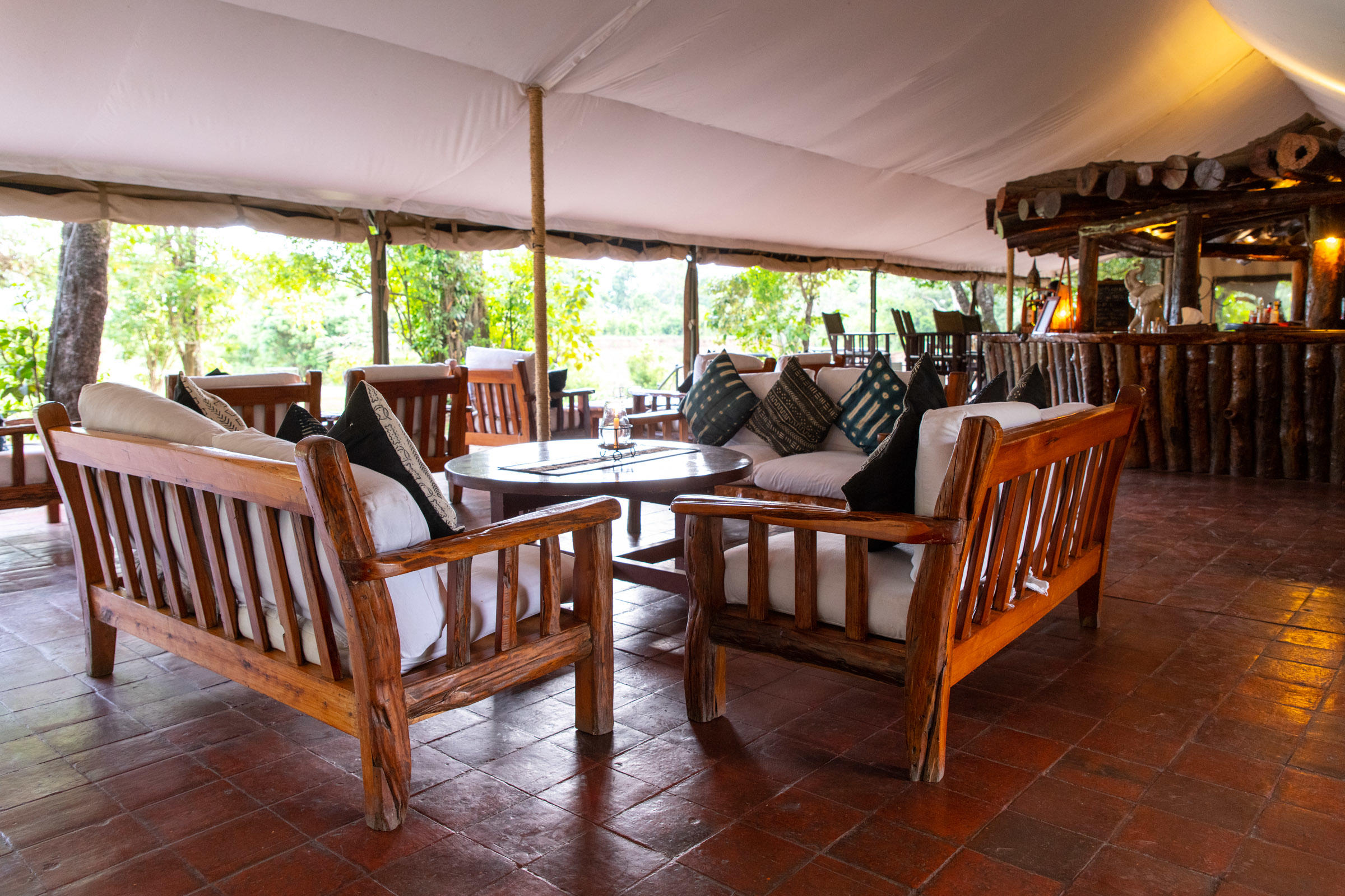 As with all camps worth their salt, the heart of Governors' camp is the campfire. Surrounded by classic safari chairs, this is the perfect spot for morning tea, an evening G&T and anything else in between, accompanied by views of animals grazing on the plains. Just behind is the dining tent and on the other side, with equally as splendid views of the Mara River, is the bar tent and an open deck for al-fresco dining.