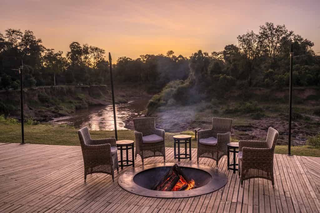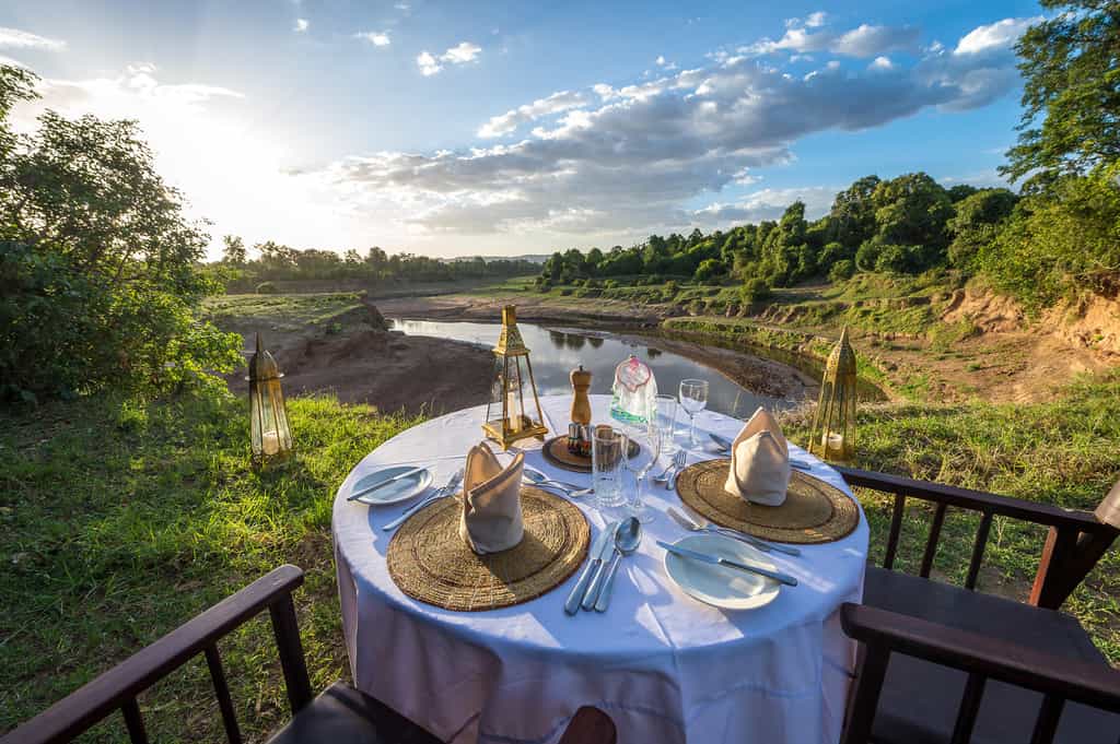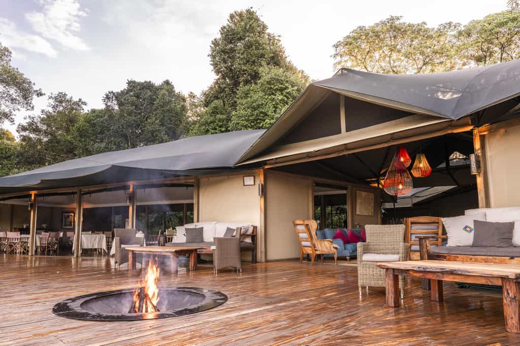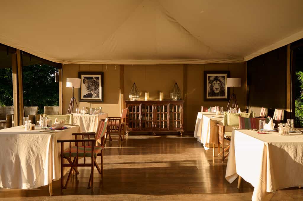 Meals are an experience in themselves at Il Moran; start your day with tea and pastries on the deck by the river before lunch in the shade of the tall evergreens that line the bank and dinner around a flickering camp fire. There’s a pretty dining and bar tent too, but in a setting so beautiful it would be a shame not to make the most of the exquisite surroundings. In the evenings, flickering lanterns light the pathways and hippo grunt softly from the river below.