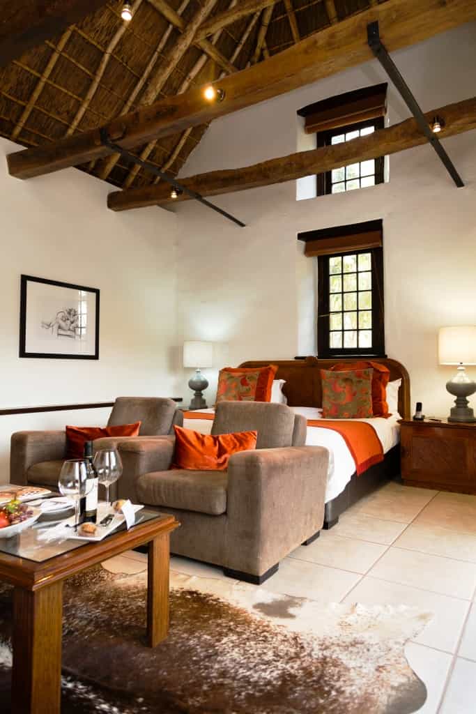There are 30 beautifully appointed suites scattered throughout the gardens, ranging in style from studio suites in the restored coach house, to vast duplex suites with a downstairs lounge, and thatched terrace suites with private verandas. All have a distinct Cape Malay/Dutch feel, with modern comforts like satellite television, underfloor heating, air-conditioning, and WiFi. The largest is the opulent Garden Suite, hidden in a private garden setting with an enormous bathroom and Jacuzzi, its own sun terrace, and enclosed patio.