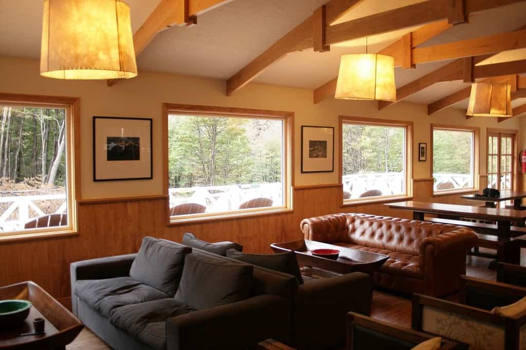 Connecting the famous W Trek with the Paine Circuit, Refugio Grey is an essential stop on your hiking adventure in Torres del Paine National Park. Sitting in a peaceful forest backdrop, you are just a few-minute walk away from the gigantic white-blue ice wall of Grey Glacier. Sit back and relax in our living room in one of our comfy armchairs to enjoy the mountain views, magazines and a television that offers documentaries and cable television. This is the perfect place to relax after a long hiking day! The refuge has a restaurant with a daily fixed menu and a vegetarian alternative. For those who prefer to cook their own meals, they have a designated area for this that is protected from the wind and rain since it is not allowed to cook inside the refuge, tents or outdoors. The corridors and common areas are heated by slow wood burning.