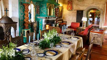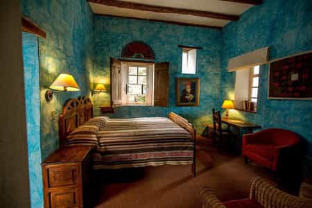 Ranging from rooms in the hacienda to more secluded garden cottages, the accommodations vary in style and size. All, however, feature large beds draped in woven bedspreads, locally-crafted or antique furniture and a cosy fireplace for those chilly evenings. The large suites have two bedrooms and a private living area overlooking the garden. Converted from the original stables, the garden cottages are particularly pretty with thick walls covered in jasmine and thunbergia vines. And every evening, you'll find a hot water bottle in bed. It's the little details...