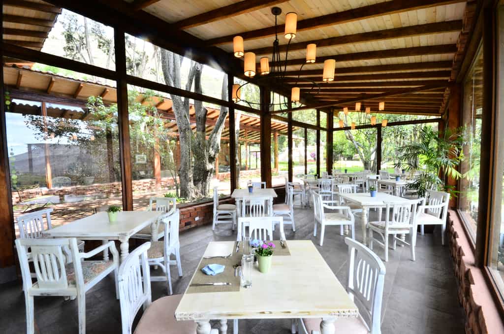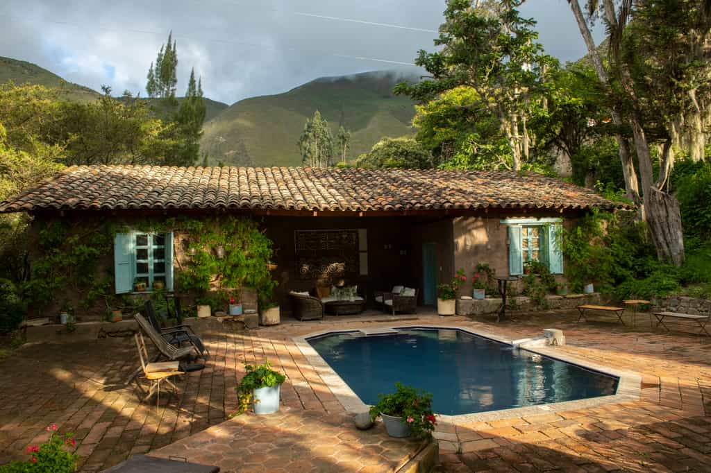 With a mossy roof and pristine, white stairs, the hacienda is pretty as a picture. Its interiors are filled with art and antiques collected from all over the world, black-and-white photographs and plenty of spots to curl up with a book. With generous windows and exposed brick walls, the restaurant boasts five menus of farm-to-table Ecuadorian and international fare. In the garden, there is a heated pool, once fed with water from the paramo, where jazz music gently plays.