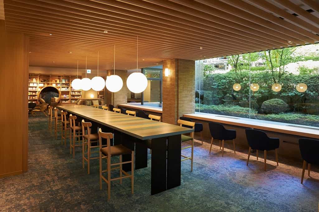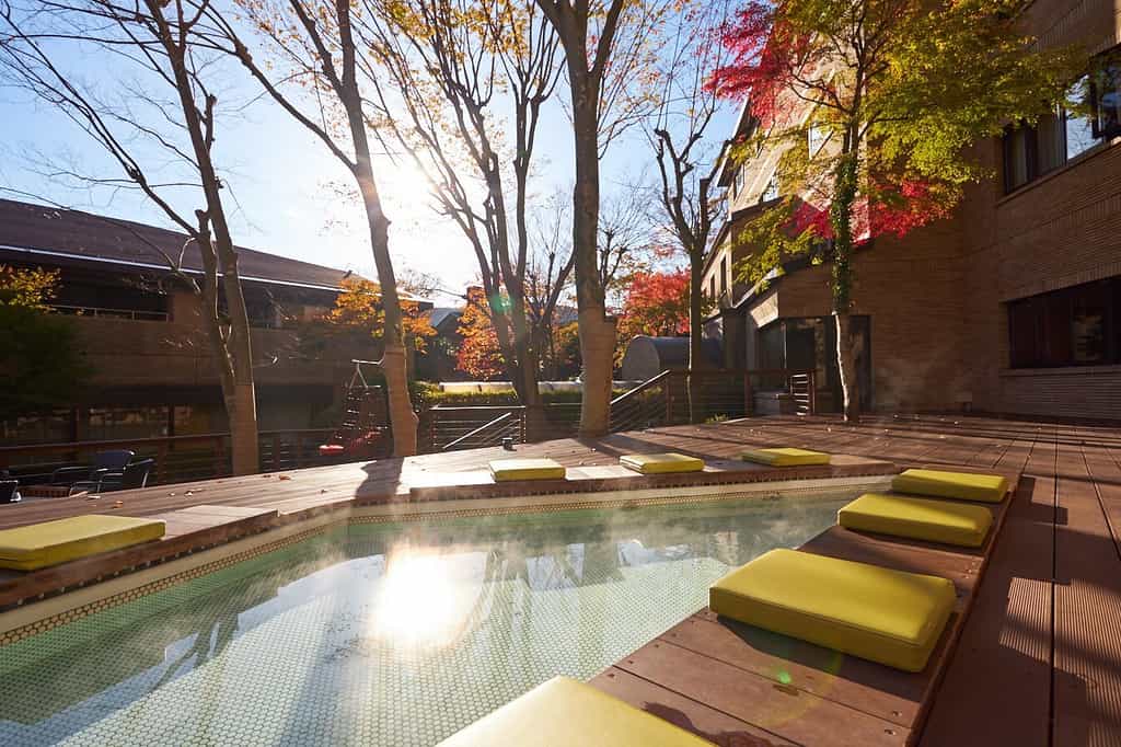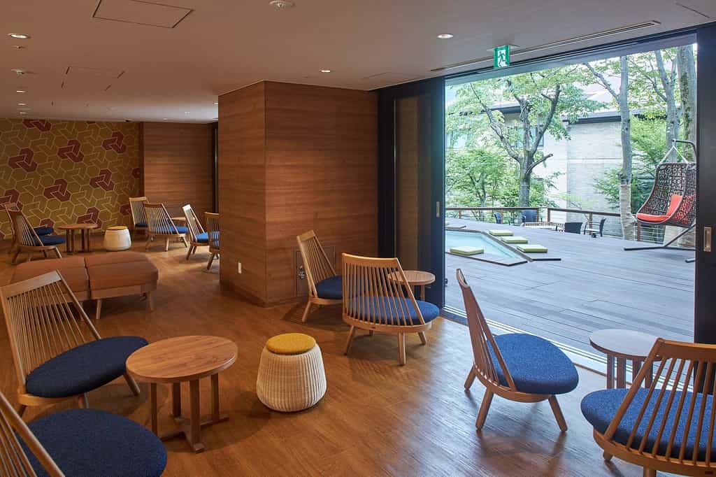 The sprawling complex reveals its personality gradually – the East Wing houses reception and the high-ceilinged restaurant, while the West Wing contains the large public baths and spa lounge. But it's the public spaces that steal the show. The library lounge on the second floor stocks 700 books and becomes a social hub with its mix of counter seats, sofas, and table games like Jenga. The atrium's wooden deck features a foot bath, bonfire stove, and swing chairs where complimentary detox water flows freely. The restaurant adopts a semi-buffet approach at dinner (about 15 dishes plus your chosen main), while breakfast spans 30 Japanese and Western options. After 10pm, when the free drinks stop flowing, the property settles into a peaceful rhythm perfect for one more soak.