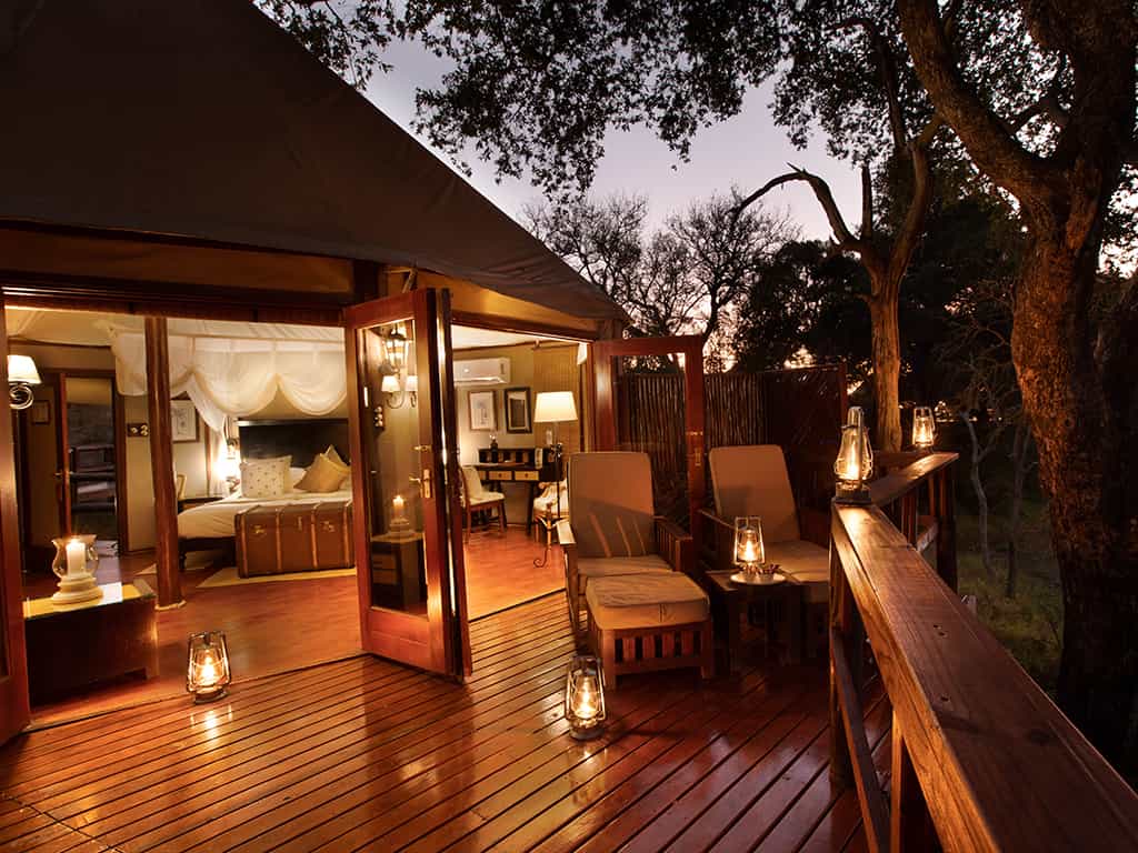 Hamiltons Tented Camp overlooks the seasonal Nwaswitsontso River, within one of the original private concessions in the western Kruger Park. This unique camp harks back to turn-of-the-century colonial safaris, and gets the balance of vintage elegance and modern comforts just right. Predator sightings are a feature in this region, with excellent all-round game viewing across scenically diverse landscapes. Guided bush walks, plus special treats like champagne breakfasts, bush dinners and spa treatments offer a well rounded safari experience with fine hospitality and a generous helping of luxury.