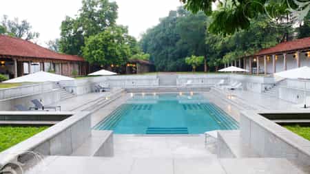 True to form, the main restaurant at Heritage Madurai is The Banyan, which serves buffet-style meals in a minimalist dining area decorated with scenes of nature. The Coffee Shop offers al fresco dining looking over the temple pool and in a section of the 1970s clubhouse, the Swig & Tree Bar is a top spot for sundowners. Enjoy a dip in the crystaline tiered pool, relaxing treatments at the Jasmine Spa and scenic strolls across the grounds.