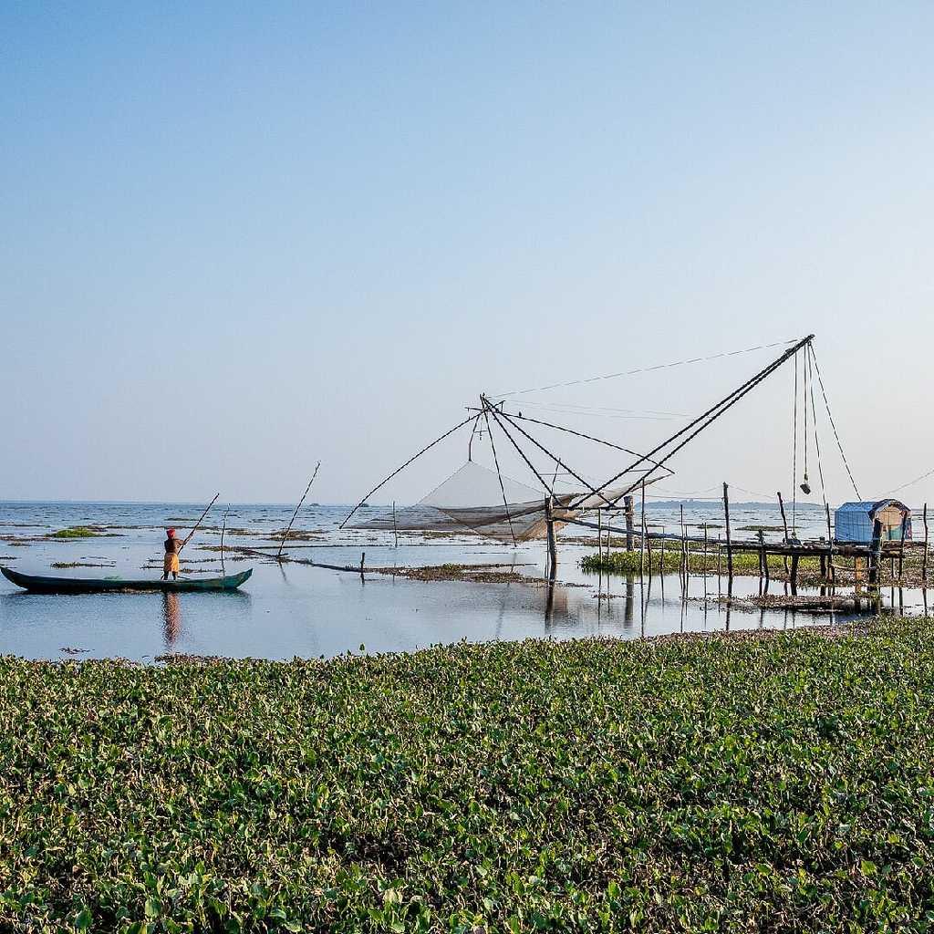 Pause and let time find its own rhythm. The distinct scent of damp soil and the fragrance of blooming flowers transport you to a place where you feel reconnected to the earth. The Vembanad Lake bristles with life as fishermen cast their Chinese nets into it.